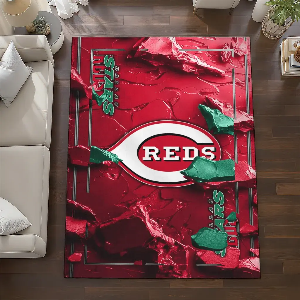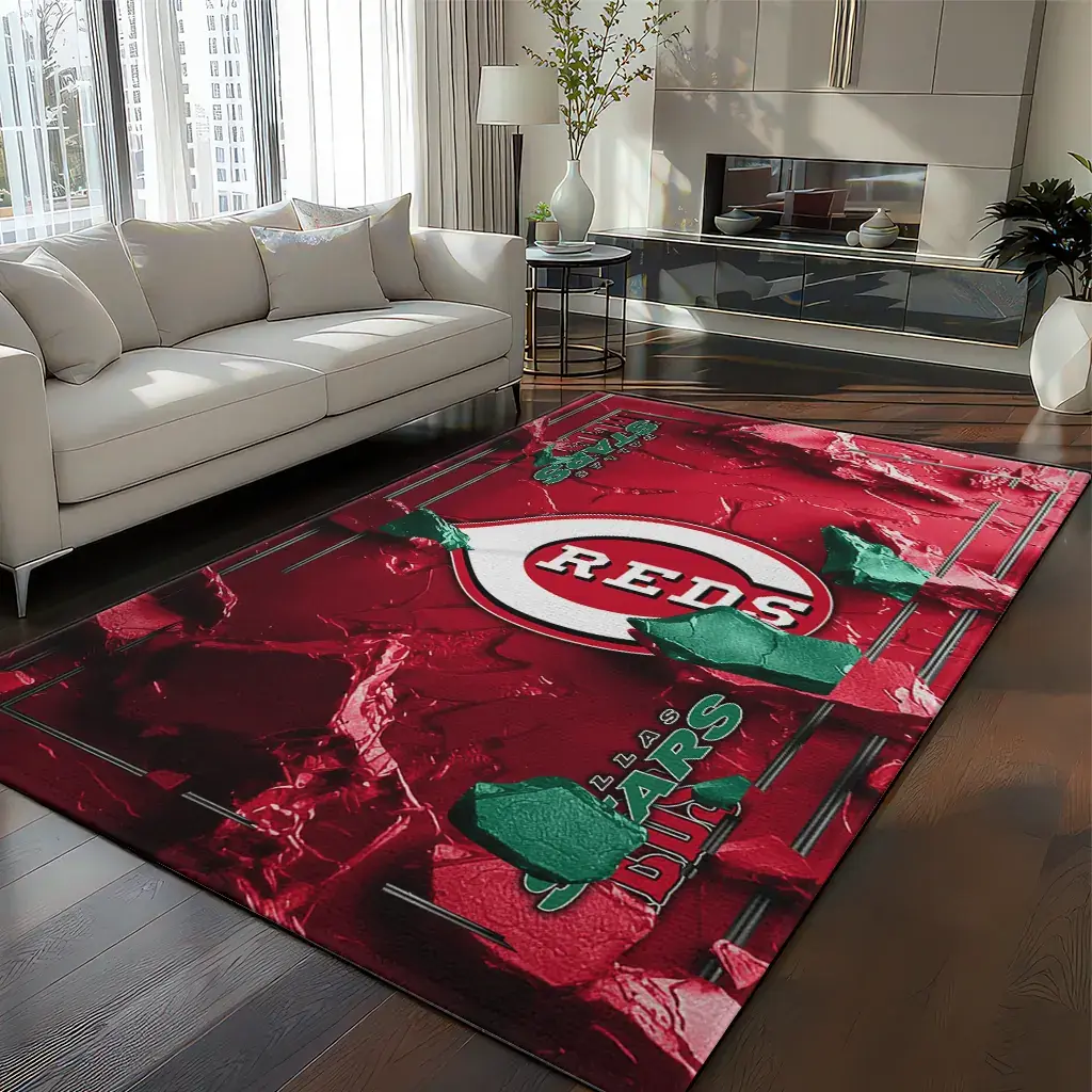 Cincinnati Reds Rug – Cracked Surface Design Red