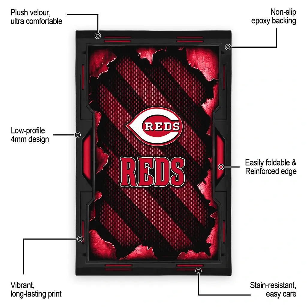 Hit a home run with your favorite team by displaying the Cincinnati Reds Rug – Personalized Torn Mesh Red from MLB Fan Zone. Featuring a bold team design and crafted with plush velour, this durable sports rug offers ultimate comfort for your home or game-day fan cave. With a quality non-slip grip and stay-flat design, it’s the perfect accessory for any die-hard fan ready to rep their team from the living room to the clubhouse.