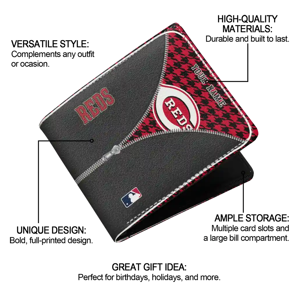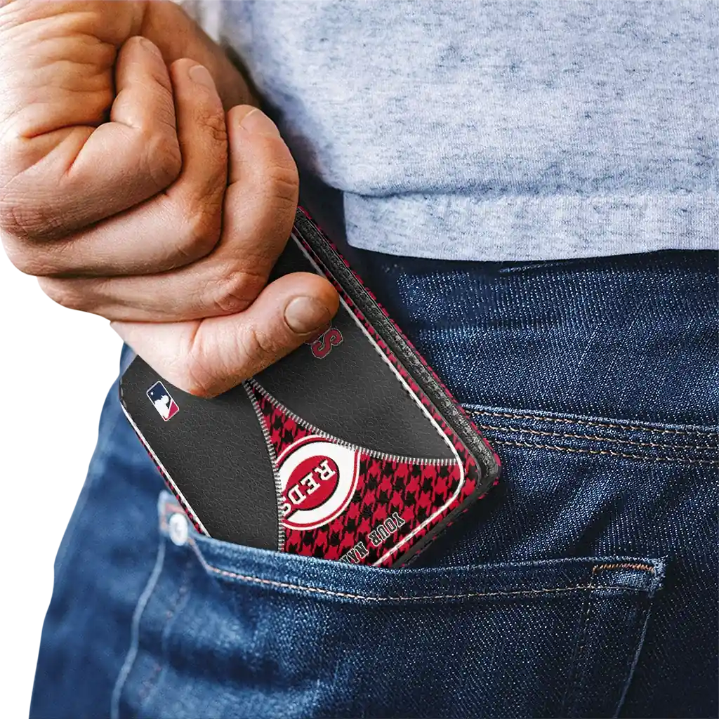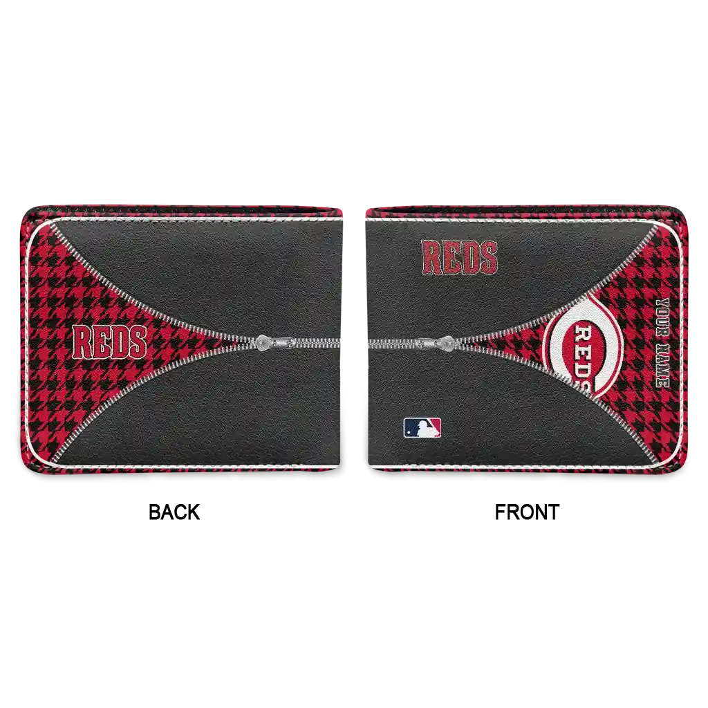 Hit a home run with Cincinnati Reds by wearing the Customized Cincinnati Reds Zipper Split Red Black Wallet. Featuring a bold team design and crafted with premium materials, this durable sports wallet offers plenty of space for your cards, cash, and game-day essentials. With a secure fold-over closure, it’s the perfect accessory for any die-hard fan ready to rep their team, from the dugout to the streets.