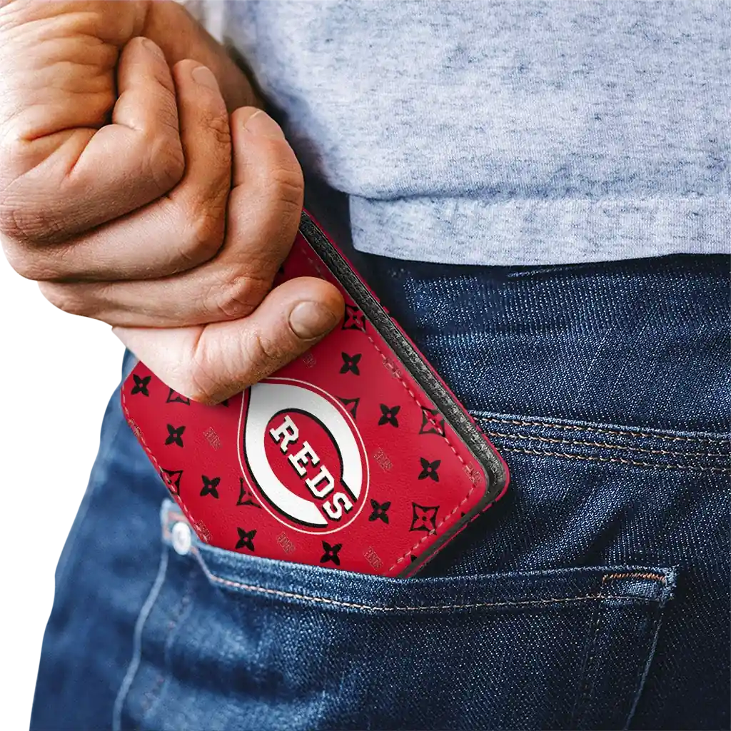 Hit a home run with Cincinnati Reds by wearing the Cincinnati Reds Iconic Monogram Bloom Red Wallet. Featuring a bold team design and crafted with premium materials, this durable sports wallet offers plenty of space for your cards, cash, and game-day essentials. With a secure fold-over closure, it’s the perfect accessory for any die-hard fan ready to rep their team, from the dugout to the streets.