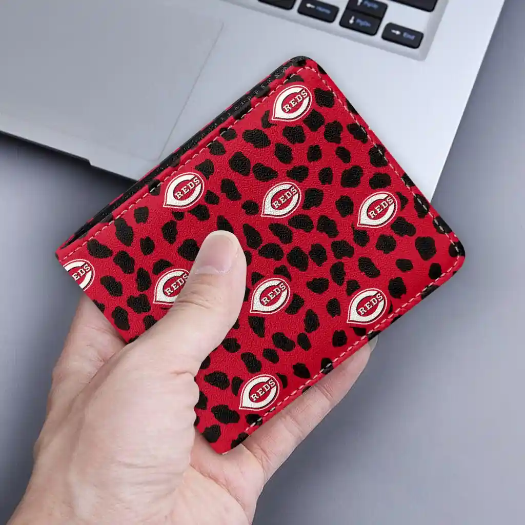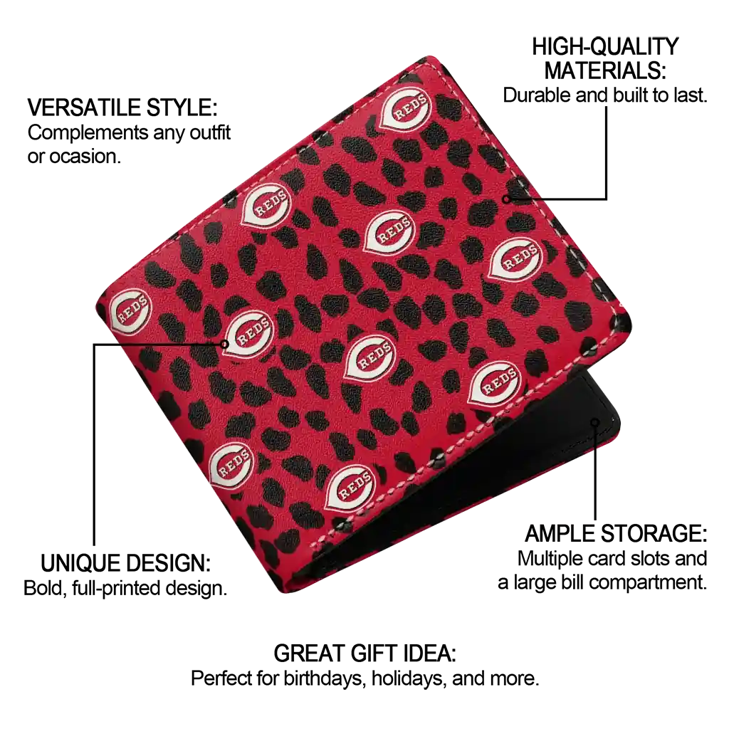Hit a home run with Cincinnati Reds by wearing the Cincinnati Reds Leopard Texture Red Wallet. Featuring a bold team design and crafted with premium materials, this durable sports wallet offers plenty of space for your cards, cash, and game-day essentials. With a secure fold-over closure, it’s the perfect accessory for any die-hard fan ready to rep their team, from the dugout to the streets.