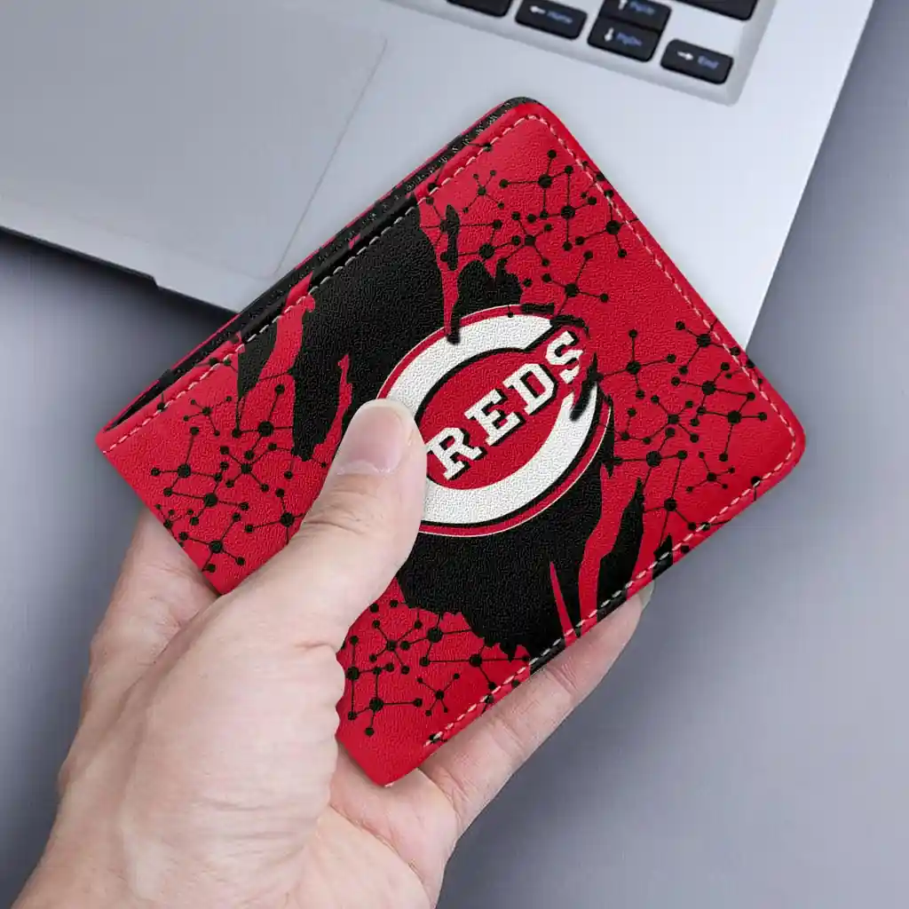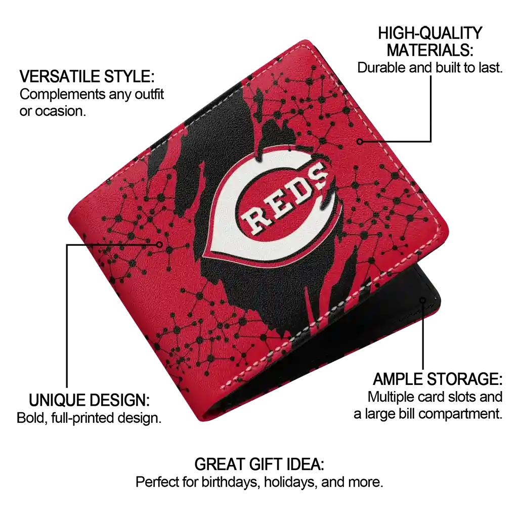 Hit a home run with Cincinnati Reds by wearing the Cincinnati Reds Torn Stripe Chaos Red Black Wallet. Featuring a bold team design and crafted with premium materials, this durable sports wallet offers plenty of space for your cards, cash, and game-day essentials. With a secure fold-over closure, it’s the perfect accessory for any die-hard fan ready to rep their team, from the dugout to the streets.