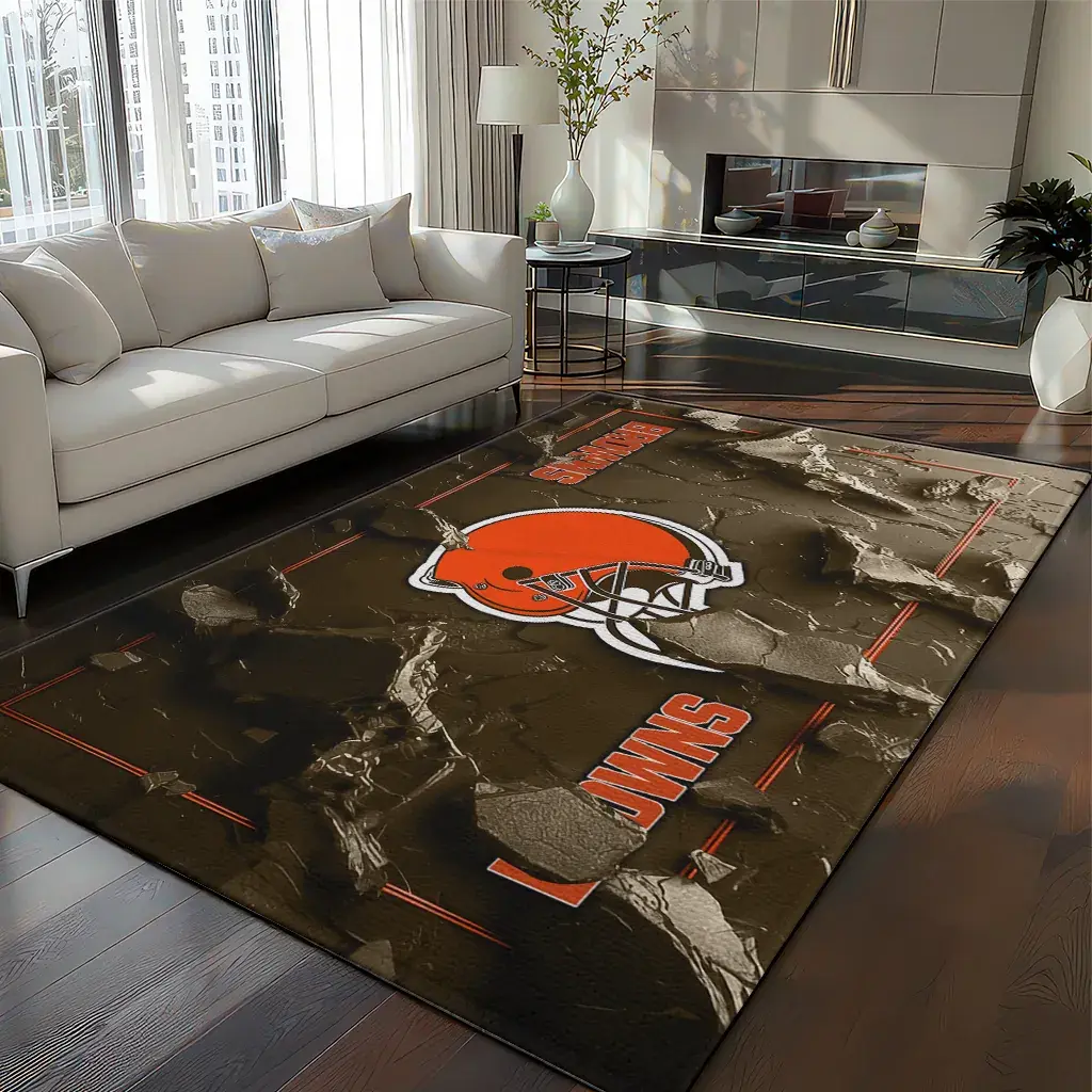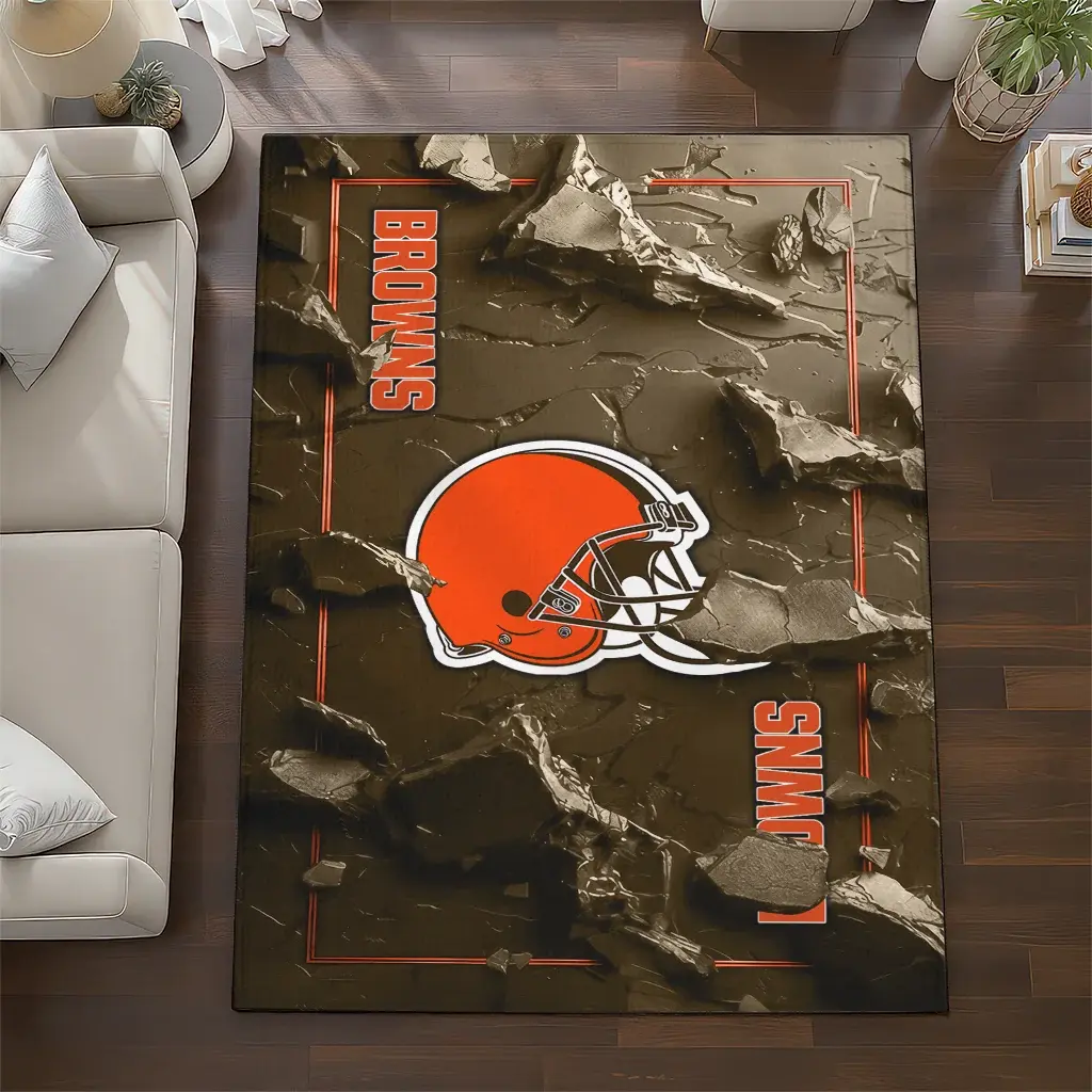 Cleveland Browns Rug – Cracked Surface Design Brown