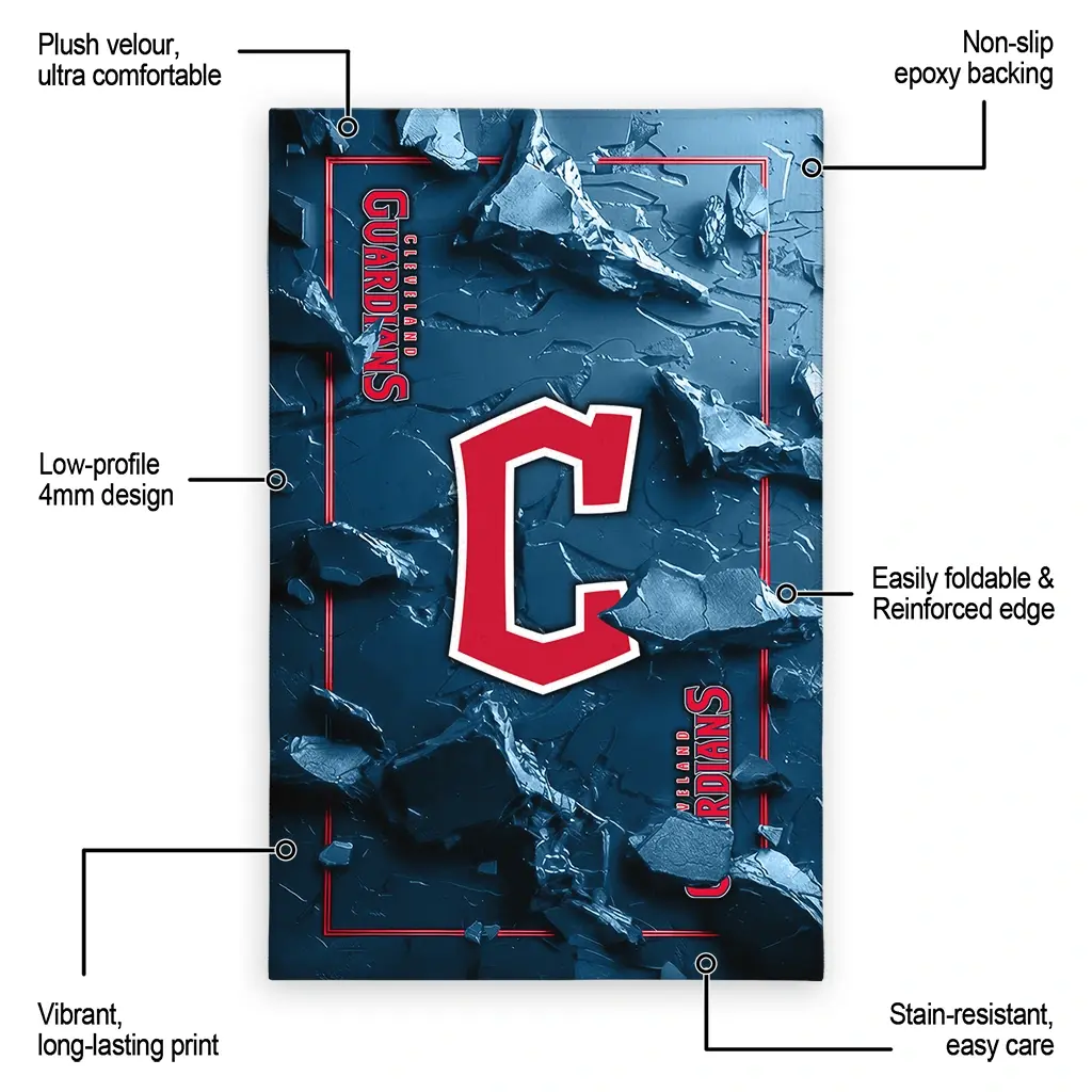 Hit a home run with your favorite team by displaying the Cleveland Guardians Rug – Personalized Cracked Surface Design Navy Blue from MLB Fan Zone. Featuring a bold team design and crafted with plush velour, this durable sports rug offers ultimate comfort for your home or game-day fan cave. With a quality non-slip grip and stay-flat design, it’s the perfect accessory for any die-hard fan ready to rep their team from the living room to the clubhouse.