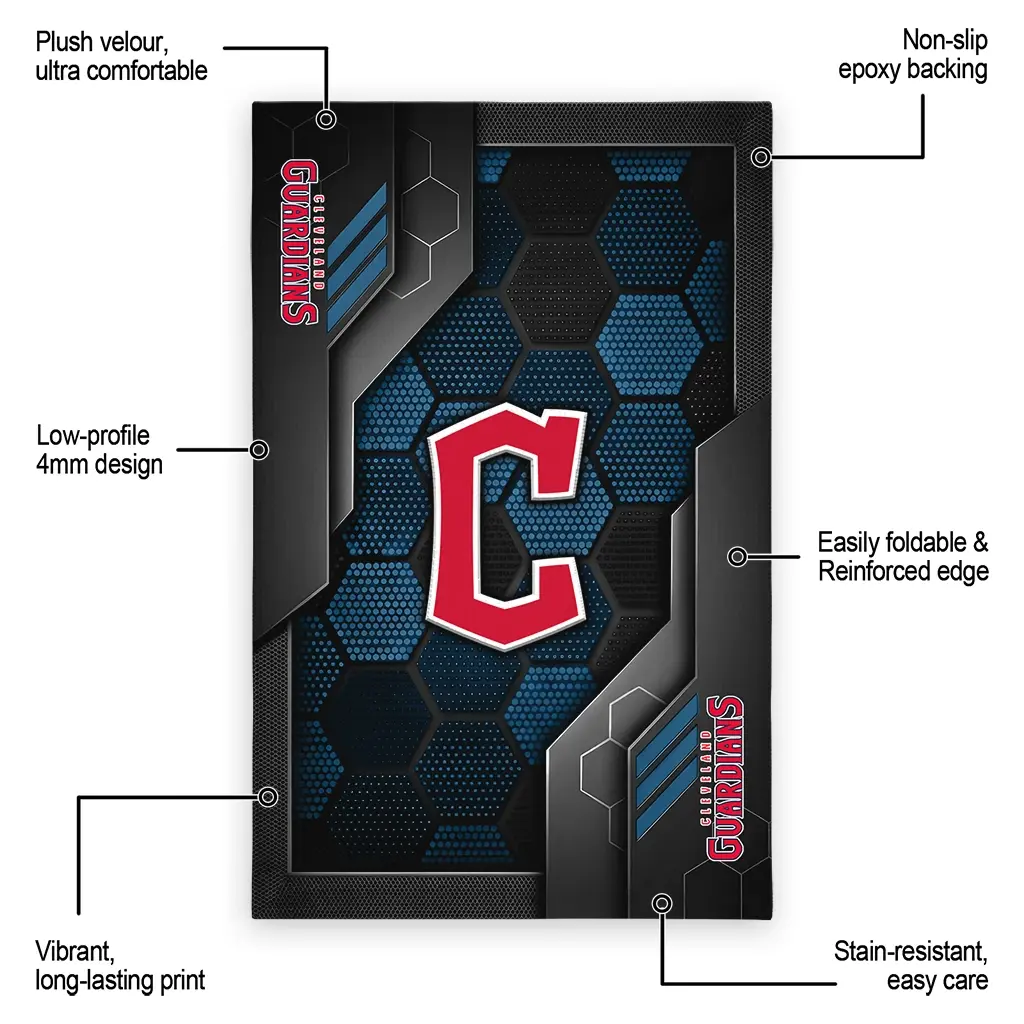Hit a home run with your favorite team by displaying the Cleveland Guardians Rug – Customized Hexagonal Grid Pattern Navy Blue from MLB Fan Zone. Featuring a bold team design and crafted with plush velour, this durable sports rug offers ultimate comfort for your home or game-day fan cave. With a quality non-slip grip and stay-flat design, it’s the perfect accessory for any die-hard fan ready to rep their team from the living room to the clubhouse.