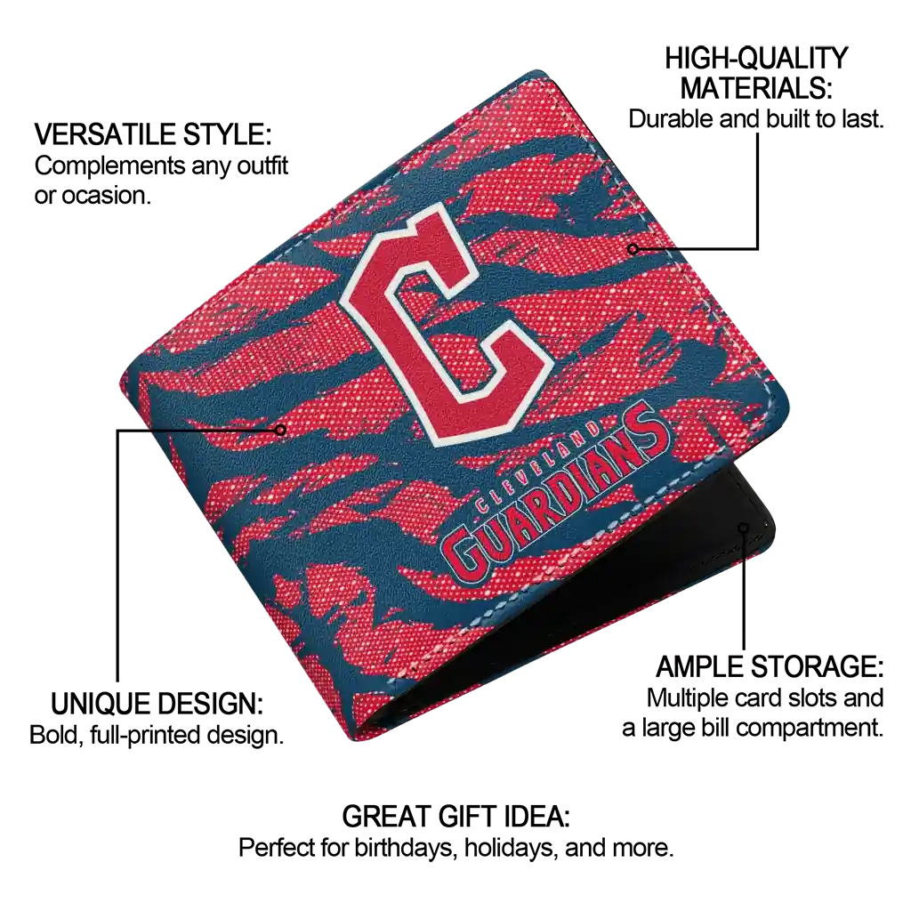 Hit a home run with Cleveland Guardians by wearing the Cleveland Guardians Abstract Stripes Navy Blue Wallet. Featuring a bold team design and crafted with premium materials, this durable sports wallet offers plenty of space for your cards, cash, and game-day essentials. With a secure fold-over closure, it’s the perfect accessory for any die-hard fan ready to rep their team, from the dugout to the streets.