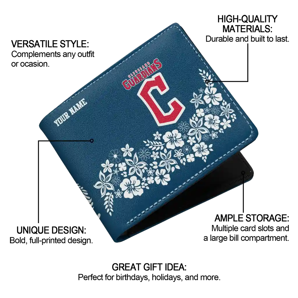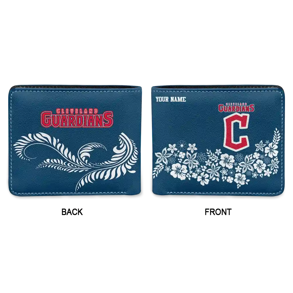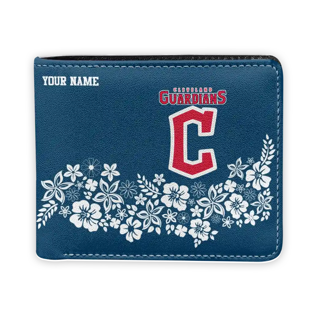 Cleveland Guardians Wallet – Personalized Floral Cluster Navy Blue White