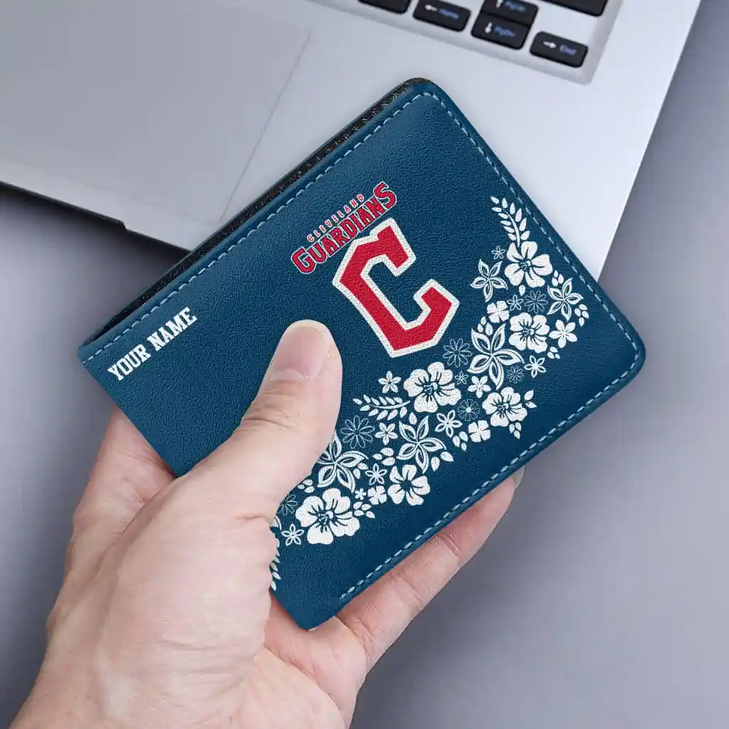 Hit a home run with Cleveland Guardians by wearing the Personalized Cleveland Guardians Floral Cluster Navy Blue White Wallet. Featuring a bold team design and crafted with premium materials, this durable sports wallet offers plenty of space for your cards, cash, and game-day essentials. With a secure fold-over closure, it’s the perfect accessory for any die-hard fan ready to rep their team, from the dugout to the streets.