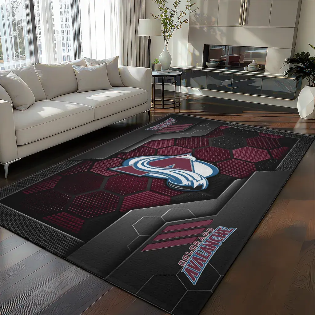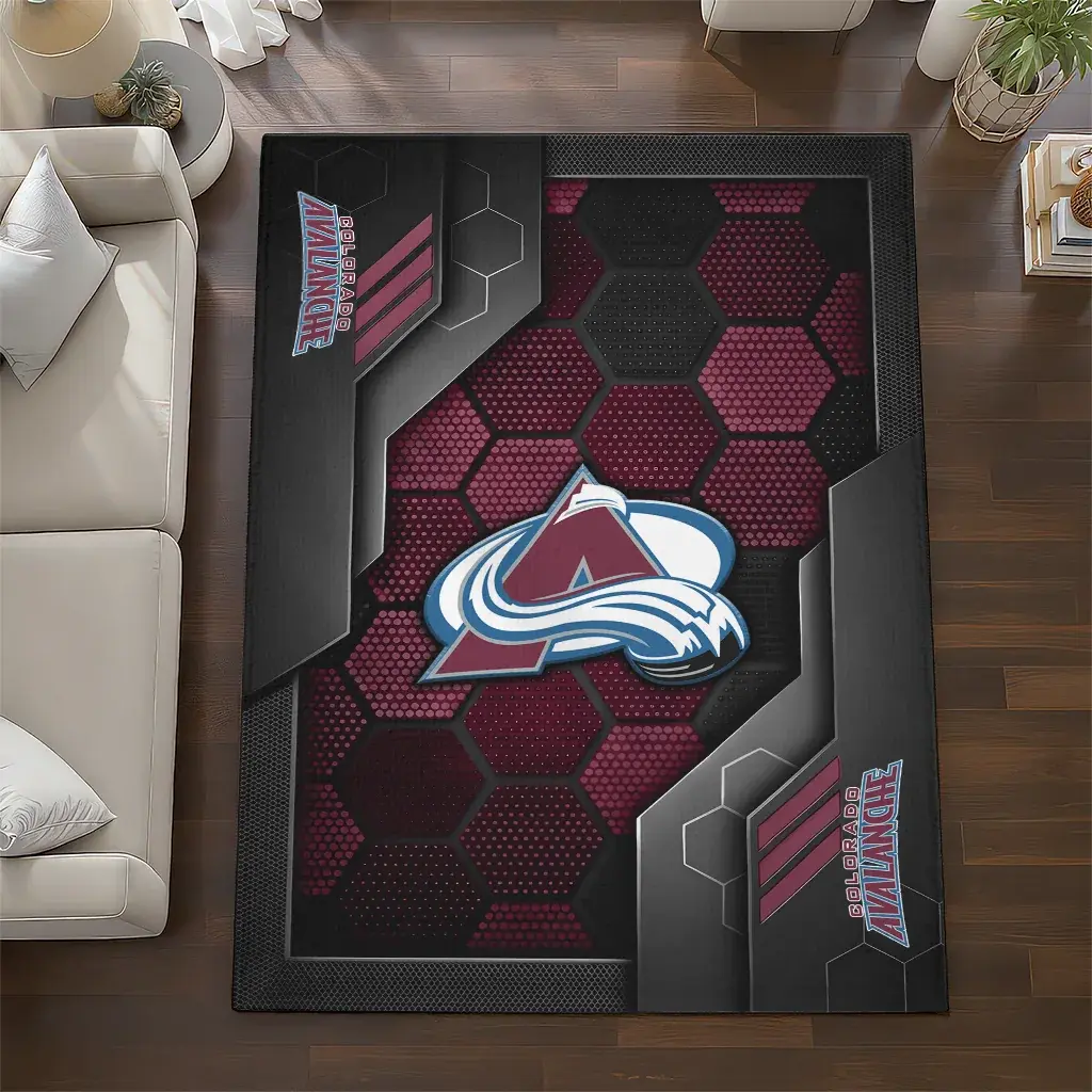 Colorado Avalanche Rug – Hexagonal Grid Pattern Burgundy