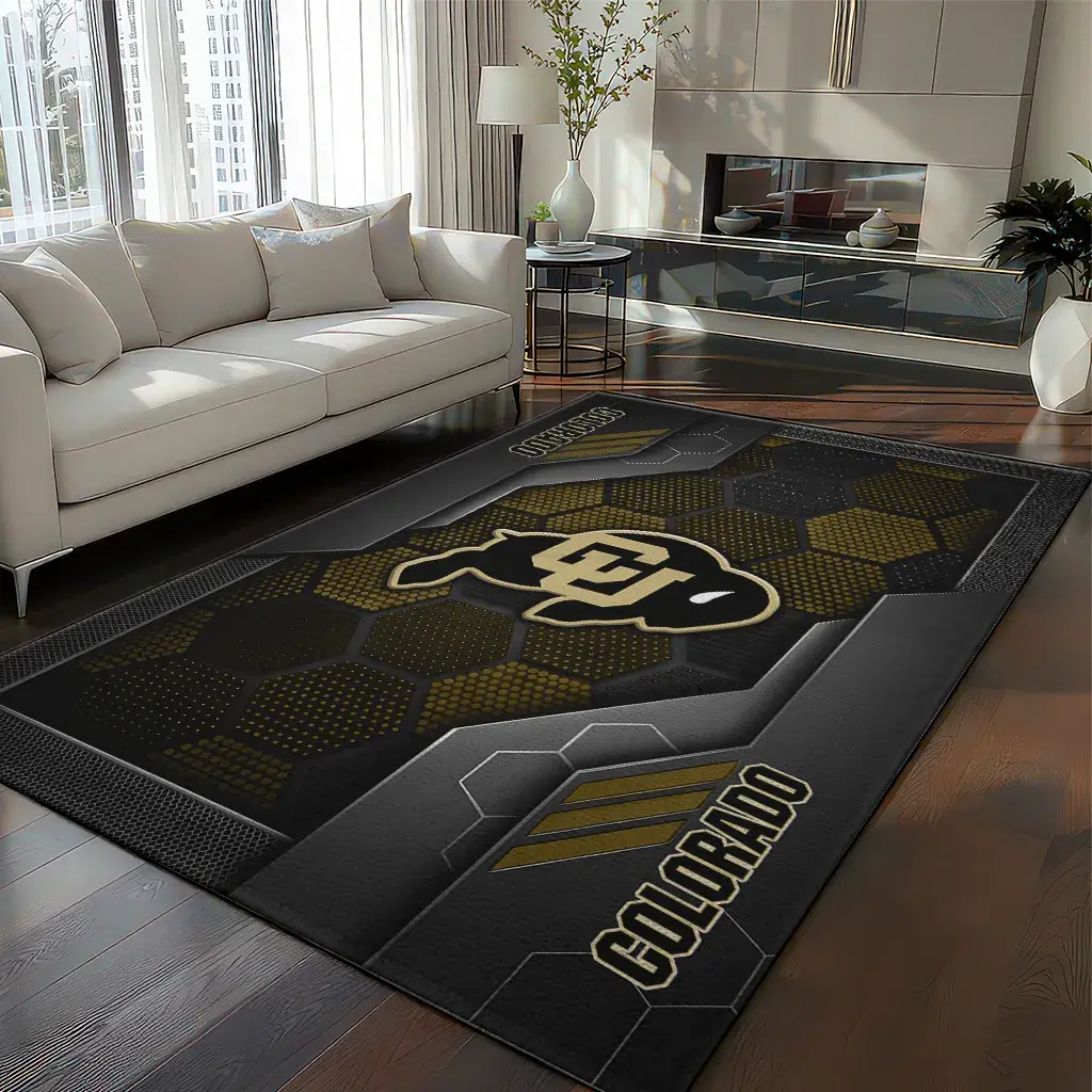 Colorado Buffaloes Rug – Hexagonal Grid Pattern Black