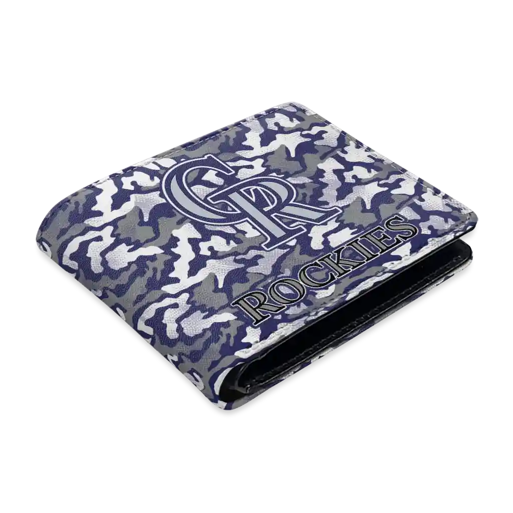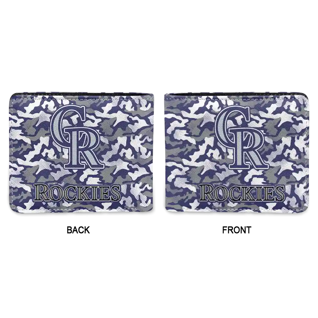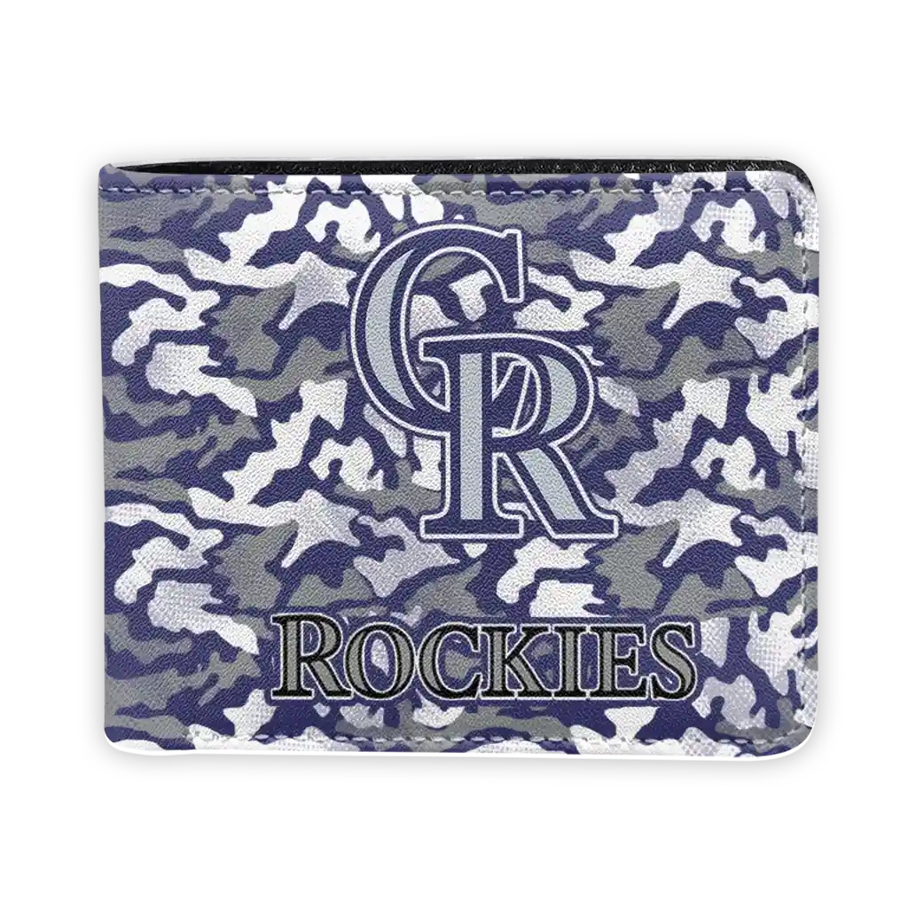 Hit a home run with Colorado Rockies by wearing the Colorado Rockies Camouflage Patches Blue White Wallet. Featuring a bold team design and crafted with premium materials, this durable sports wallet offers plenty of space for your cards, cash, and game-day essentials. With a secure fold-over closure, it’s the perfect accessory for any die-hard fan ready to rep their team, from the dugout to the streets.