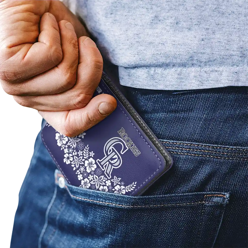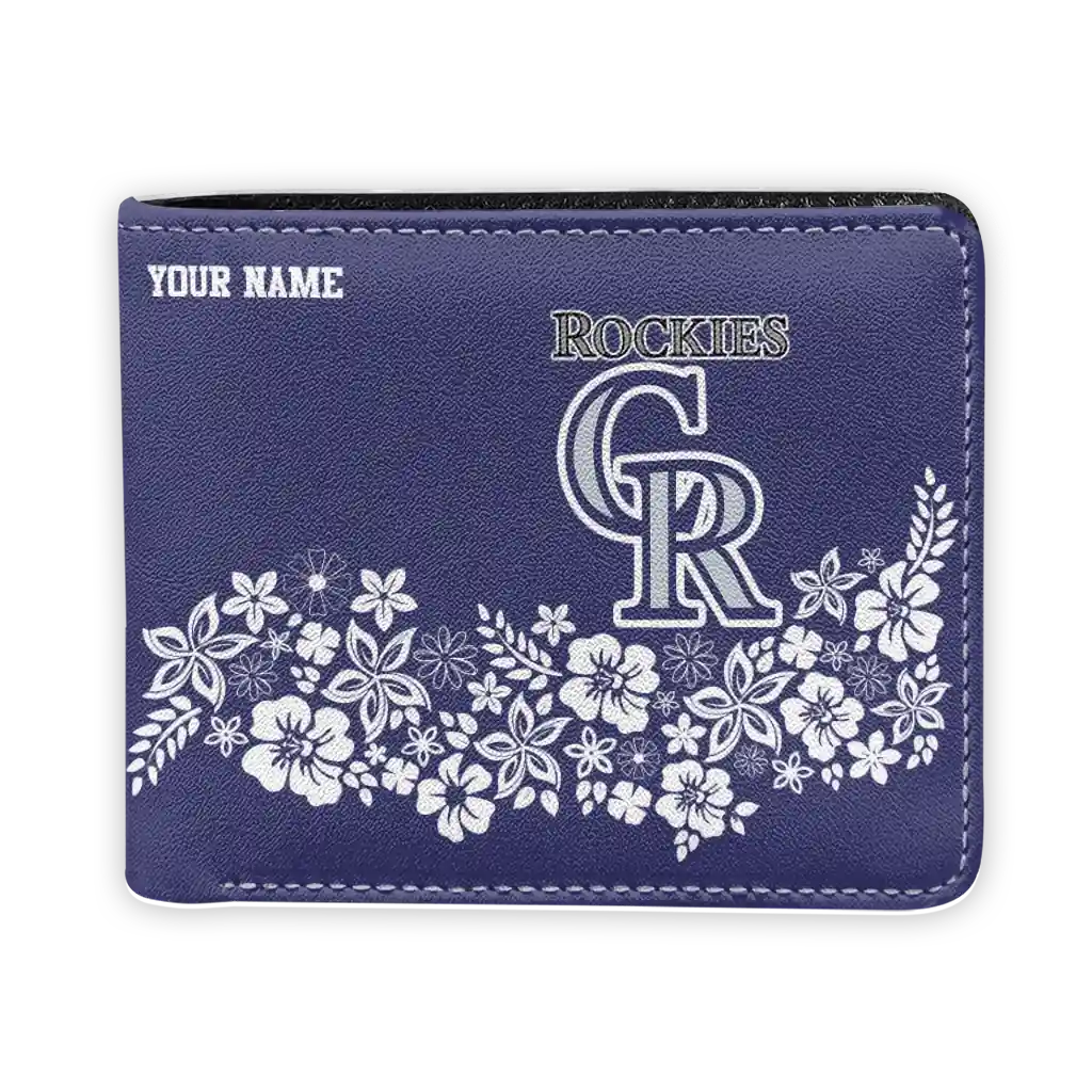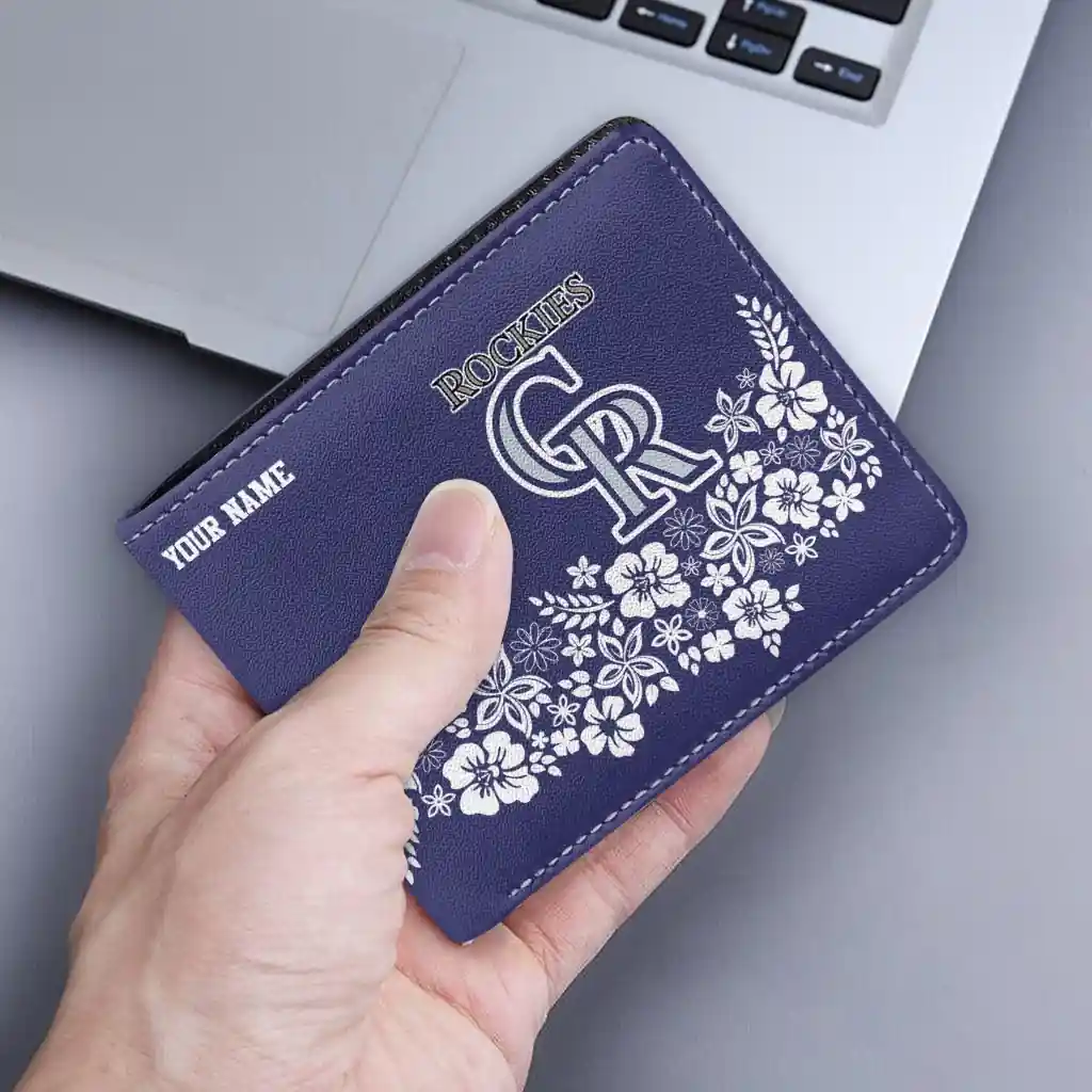 Hit a home run with Colorado Rockies by wearing the Customized Colorado Rockies Floral Cluster Blue White Wallet. Featuring a bold team design and crafted with premium materials, this durable sports wallet offers plenty of space for your cards, cash, and game-day essentials. With a secure fold-over closure, it’s the perfect accessory for any die-hard fan ready to rep their team, from the dugout to the streets.