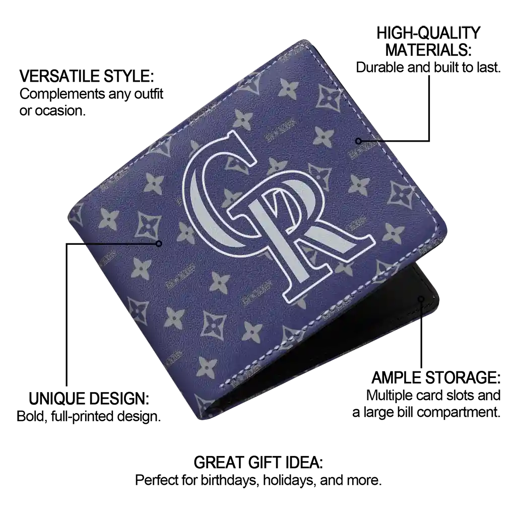 Hit a home run with Colorado Rockies by wearing the Colorado Rockies Iconic Monogram Bloom Blue Wallet. Featuring a bold team design and crafted with premium materials, this durable sports wallet offers plenty of space for your cards, cash, and game-day essentials. With a secure fold-over closure, it’s the perfect accessory for any die-hard fan ready to rep their team, from the dugout to the streets.