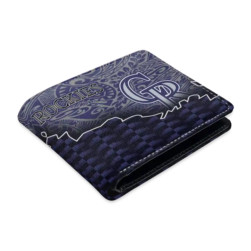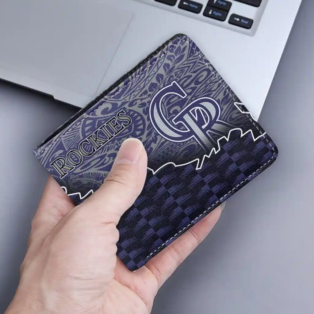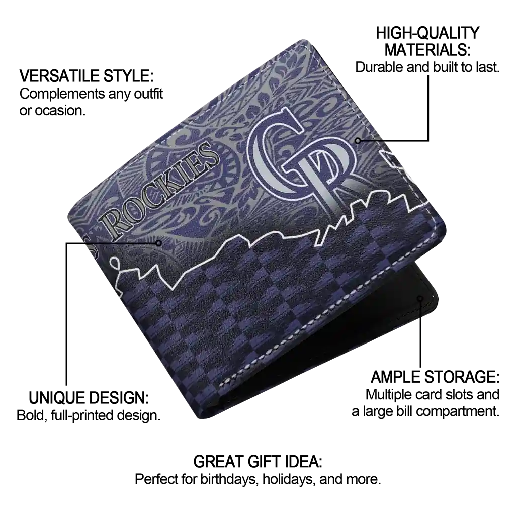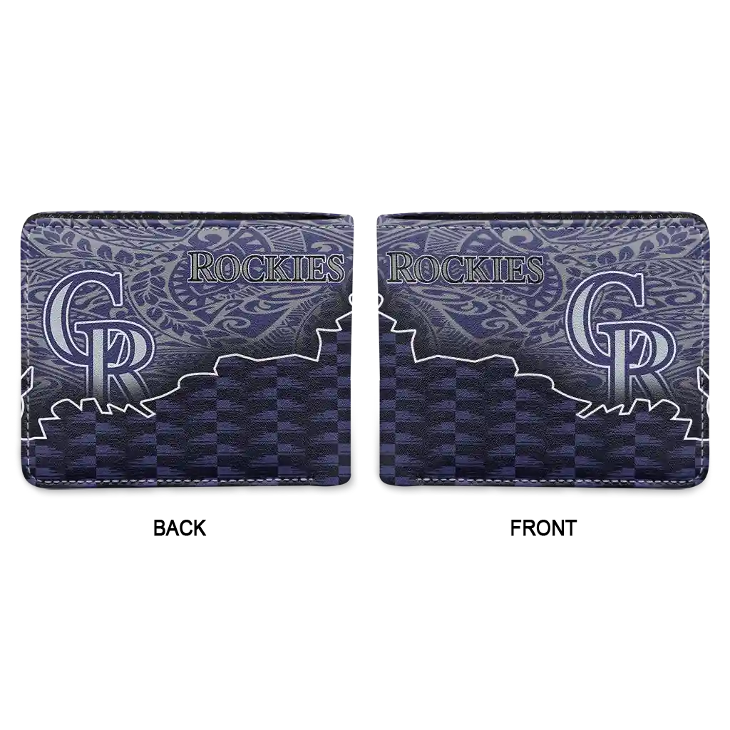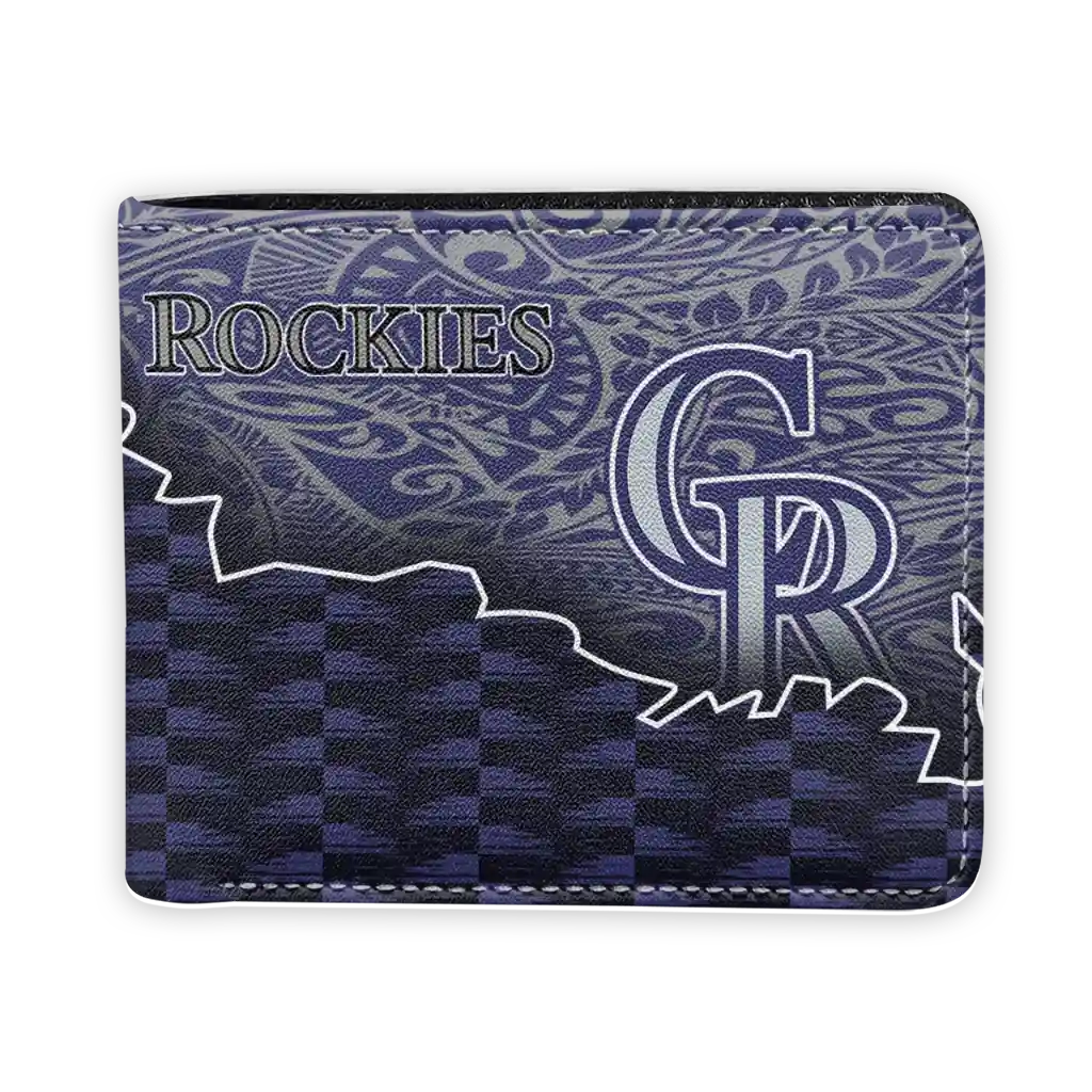 Hit a home run with Colorado Rockies by wearing the Colorado Rockies Tribal Fade Fusion Blue Black Wallet. Featuring a bold team design and crafted with premium materials, this durable sports wallet offers plenty of space for your cards, cash, and game-day essentials. With a secure fold-over closure, it’s the perfect accessory for any die-hard fan ready to rep their team, from the dugout to the streets.