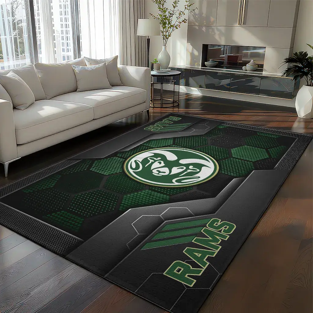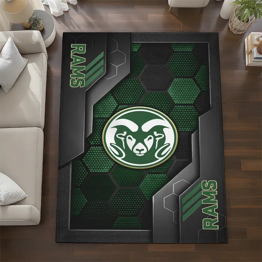 Colorado State Rams Rug – Hexagonal Grid Pattern Green