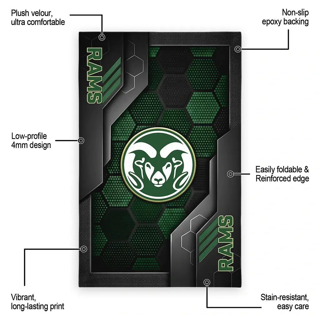 Hit a home run with your favorite team by displaying the Colorado State Rams Rug – Custom Hexagonal Grid Pattern Green from MLB Fan Zone. Featuring a bold team design and crafted with plush velour, this durable sports rug offers ultimate comfort for your home or game-day fan cave. With a quality non-slip grip and stay-flat design, it’s the perfect accessory for any die-hard fan ready to rep their team from the living room to the clubhouse.