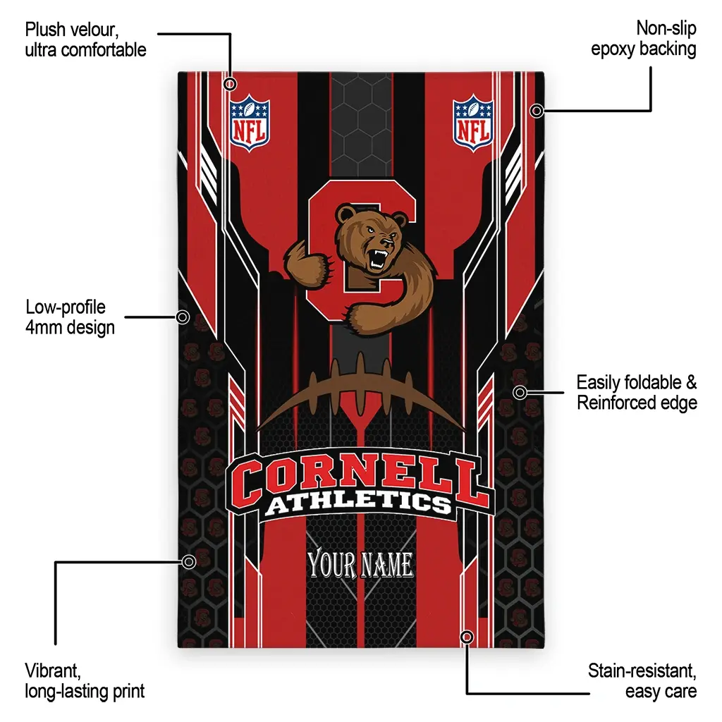Hit a home run with your favorite team by displaying the Cornell Big Red Rug – Personalized Football Laces Red from MLB Fan Zone. Featuring a bold team design and crafted with plush velour, this durable sports rug offers ultimate comfort for your home or game-day fan cave. With a quality non-slip grip and stay-flat design, it’s the perfect accessory for any die-hard fan ready to rep their team from the living room to the clubhouse.