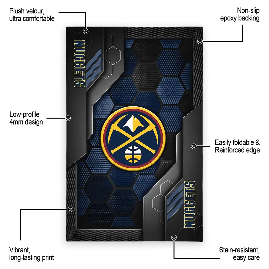 Hit a home run with your favorite team by displaying the Denver Nuggets Rug – Personalized Hexagonal Grid Pattern Blue from MLB Fan Zone. Featuring a bold team design and crafted with plush velour, this durable sports rug offers ultimate comfort for your home or game-day fan cave. With a quality non-slip grip and stay-flat design, it’s the perfect accessory for any die-hard fan ready to rep their team from the living room to the clubhouse.