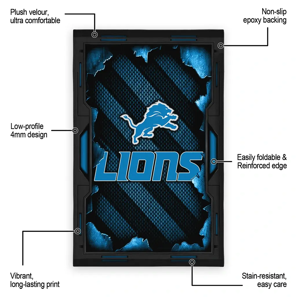 Hit a home run with your favorite team by displaying the Detroit Lions Rug – Customized Torn Mesh Blue from MLB Fan Zone. Featuring a bold team design and crafted with plush velour, this durable sports rug offers ultimate comfort for your home or game-day fan cave. With a quality non-slip grip and stay-flat design, it’s the perfect accessory for any die-hard fan ready to rep their team from the living room to the clubhouse.