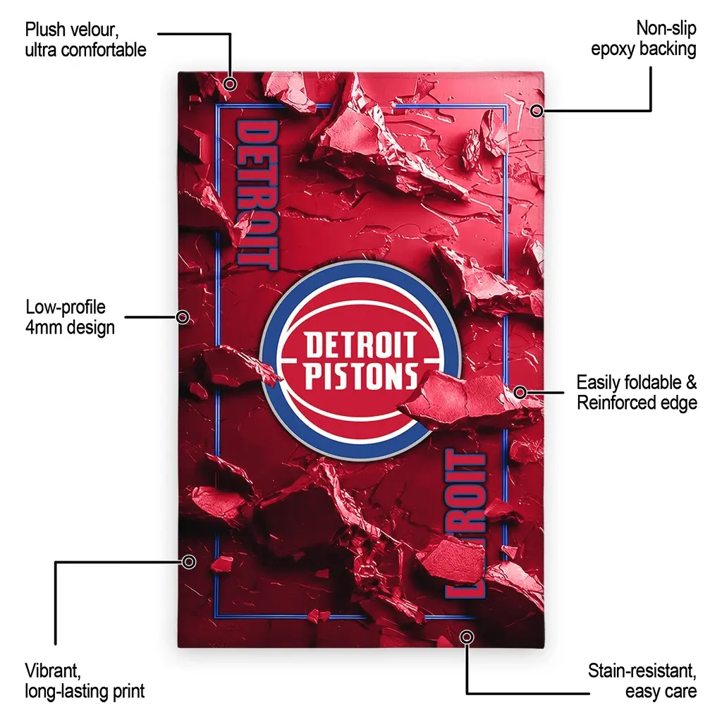 Hit a home run with your favorite team by displaying the Detroit Pistons Rug – Customized Cracked Surface Design Red from MLB Fan Zone. Featuring a bold team design and crafted with plush velour, this durable sports rug offers ultimate comfort for your home or game-day fan cave. With a quality non-slip grip and stay-flat design, it’s the perfect accessory for any die-hard fan ready to rep their team from the living room to the clubhouse.