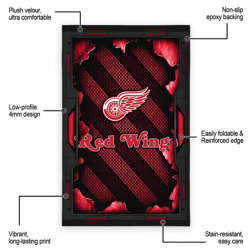Hit a home run with your favorite team by displaying the Detroit Red Wings Rug – Custom Torn Mesh Red from MLB Fan Zone. Featuring a bold team design and crafted with plush velour, this durable sports rug offers ultimate comfort for your home or game-day fan cave. With a quality non-slip grip and stay-flat design, it’s the perfect accessory for any die-hard fan ready to rep their team from the living room to the clubhouse.