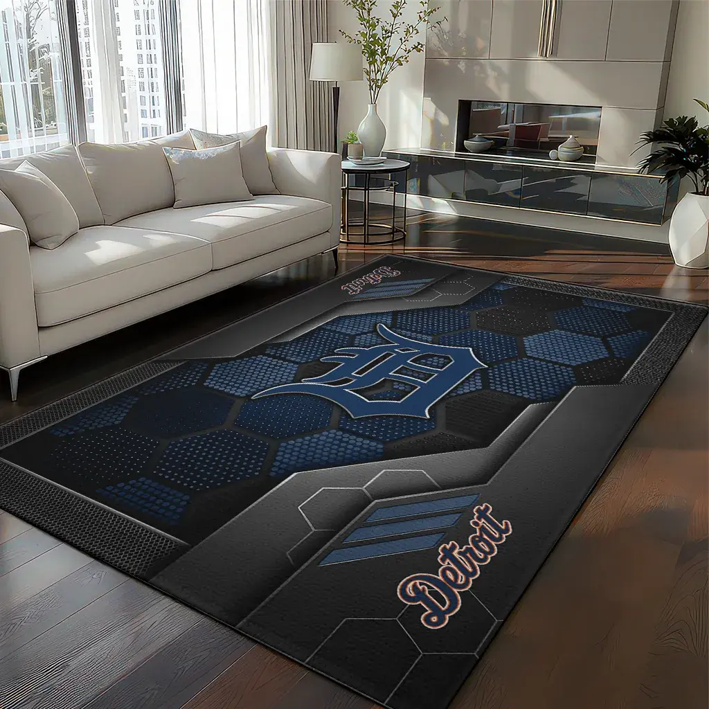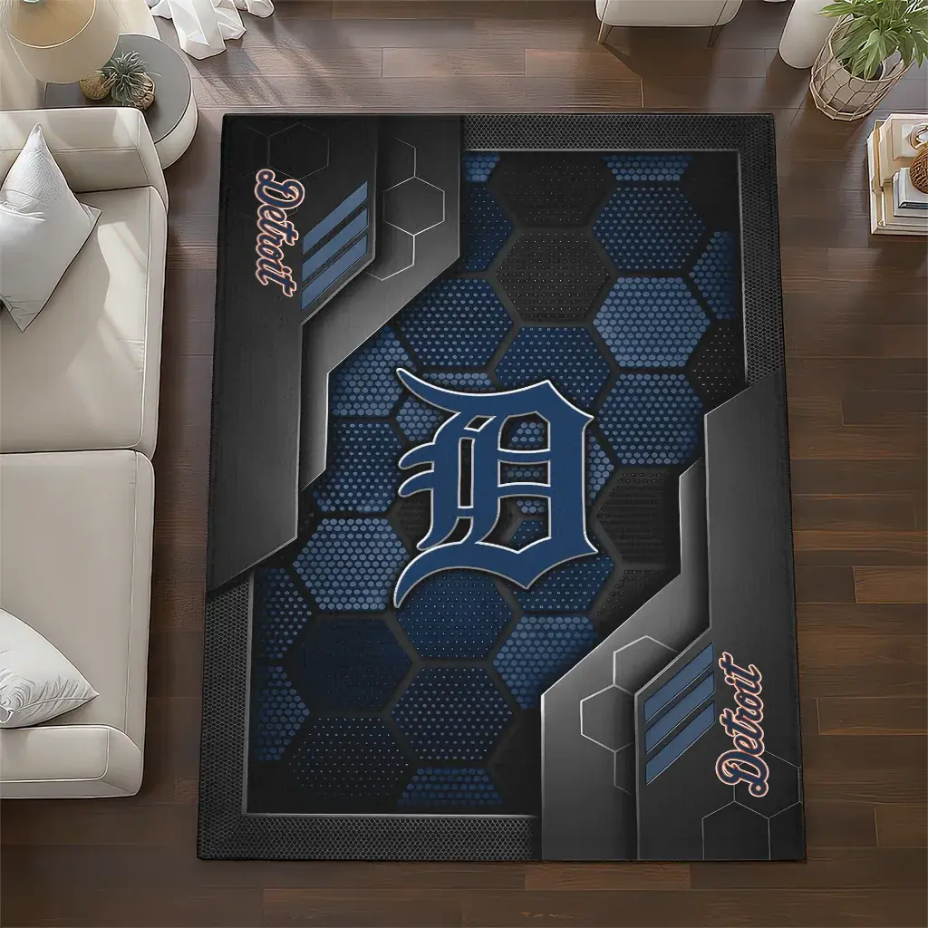 Detroit Tigers Rug – Hexagonal Grid Pattern Navy