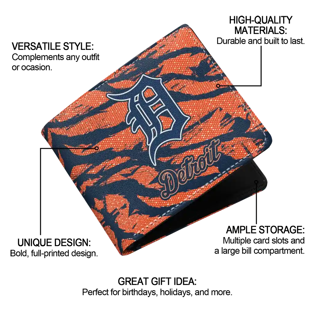 Hit a home run with Detroit Tigers by wearing the Detroit Tigers Abstract Stripes Navy Wallet. Featuring a bold team design and crafted with premium materials, this durable sports wallet offers plenty of space for your cards, cash, and game-day essentials. With a secure fold-over closure, it’s the perfect accessory for any die-hard fan ready to rep their team, from the dugout to the streets.