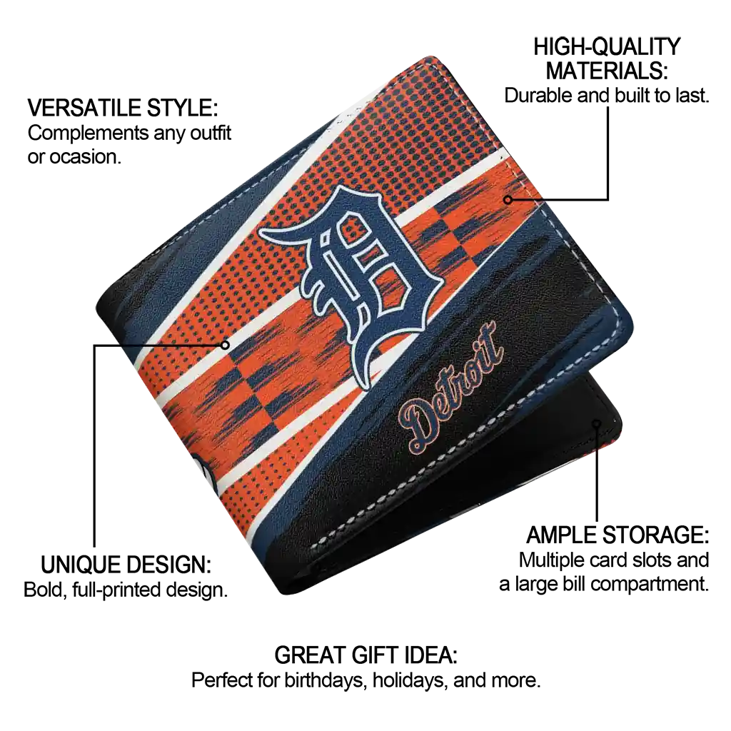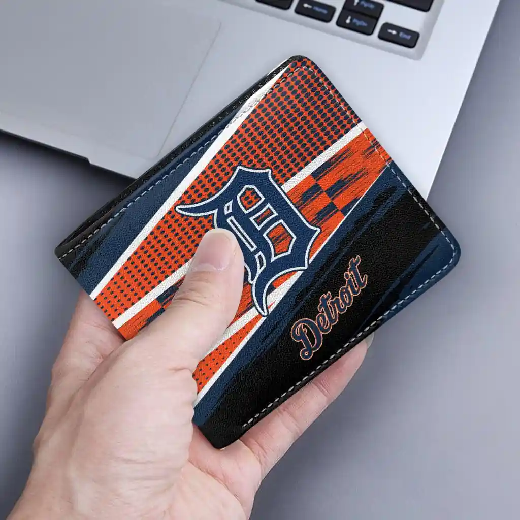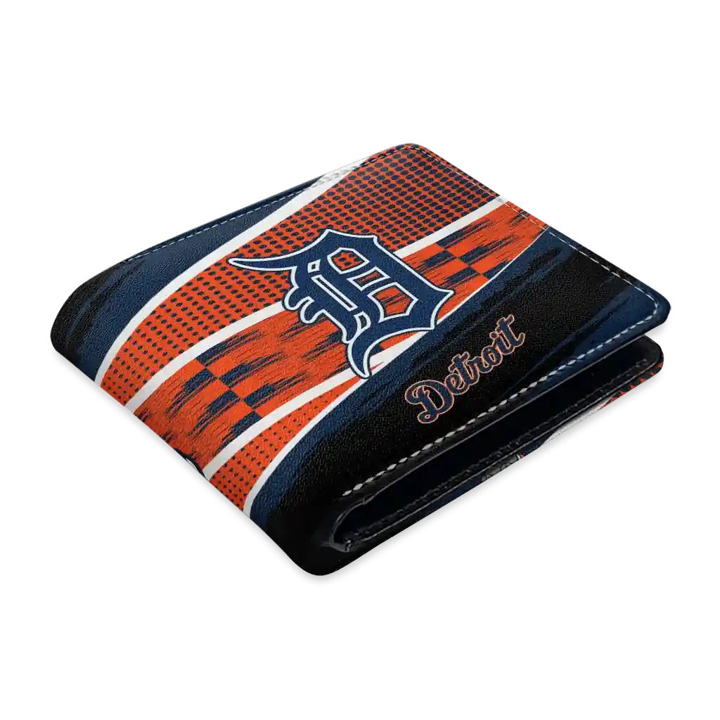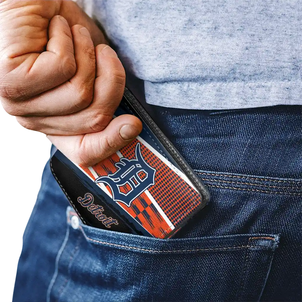 Hit a home run with Detroit Tigers by wearing the Personalized Detroit Tigers Checkerboard Brush Navy Black Wallet. Featuring a bold team design and crafted with premium materials, this durable sports wallet offers plenty of space for your cards, cash, and game-day essentials. With a secure fold-over closure, it’s the perfect accessory for any die-hard fan ready to rep their team, from the dugout to the streets.