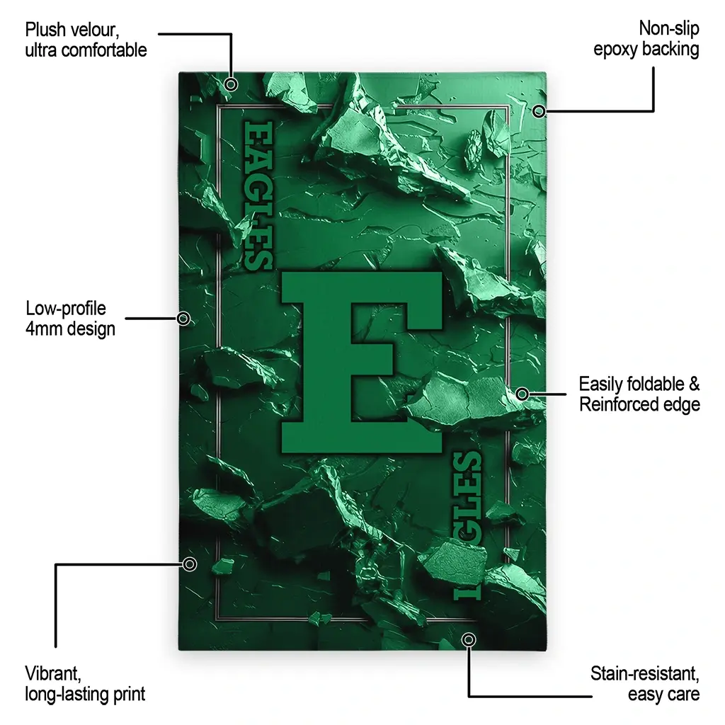 Hit a home run with your favorite team by displaying the Eastern Michigan Eagles Rug – Custom Cracked Surface Design Green from MLB Fan Zone. Featuring a bold team design and crafted with plush velour, this durable sports rug offers ultimate comfort for your home or game-day fan cave. With a quality non-slip grip and stay-flat design, it’s the perfect accessory for any die-hard fan ready to rep their team from the living room to the clubhouse.