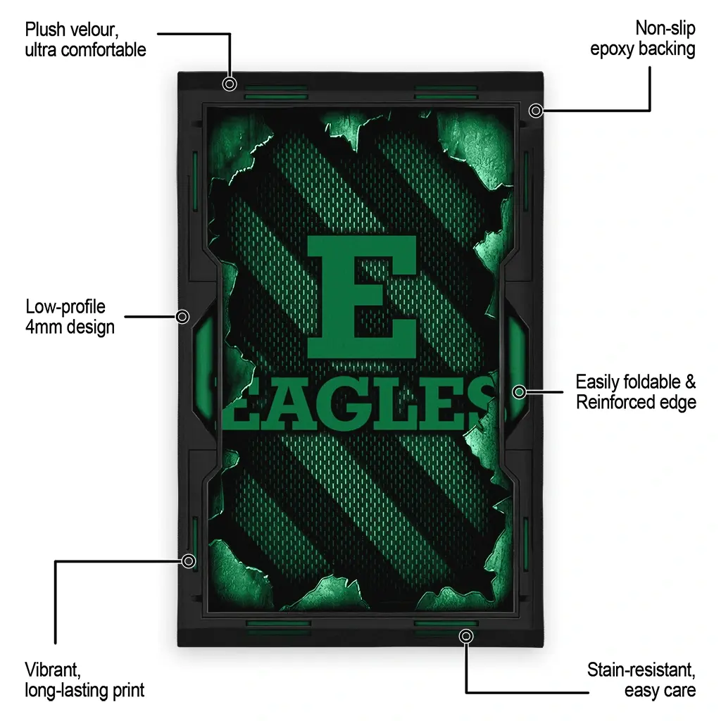 Hit a home run with your favorite team by displaying the Eastern Michigan Eagles Rug – Customized Torn Mesh Green from MLB Fan Zone. Featuring a bold team design and crafted with plush velour, this durable sports rug offers ultimate comfort for your home or game-day fan cave. With a quality non-slip grip and stay-flat design, it’s the perfect accessory for any die-hard fan ready to rep their team from the living room to the clubhouse.