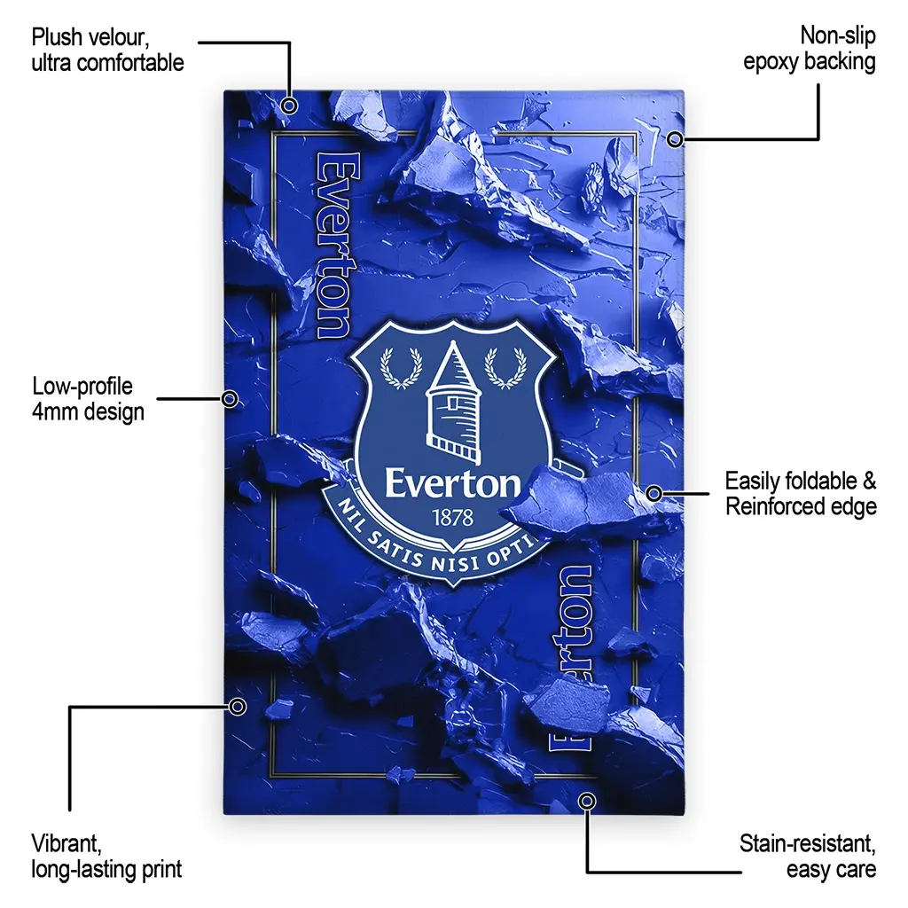 Hit a home run with your favorite team by displaying the Everton Rug – Customized Cracked Surface Design Royal Blue from MLB Fan Zone. Featuring a bold team design and crafted with plush velour, this durable sports rug offers ultimate comfort for your home or game-day fan cave. With a quality non-slip grip and stay-flat design, it’s the perfect accessory for any die-hard fan ready to rep their team from the living room to the clubhouse.