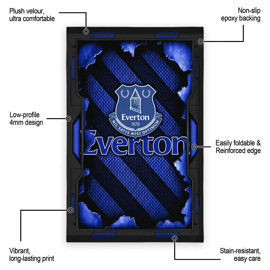Hit a home run with your favorite team by displaying the Everton Rug – Personalized Torn Mesh Royal Blue from MLB Fan Zone. Featuring a bold team design and crafted with plush velour, this durable sports rug offers ultimate comfort for your home or game-day fan cave. With a quality non-slip grip and stay-flat design, it’s the perfect accessory for any die-hard fan ready to rep their team from the living room to the clubhouse.