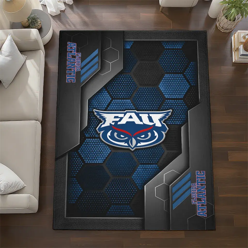 Florida Atlantic Owls Rug – Hexagonal Grid Pattern Blue