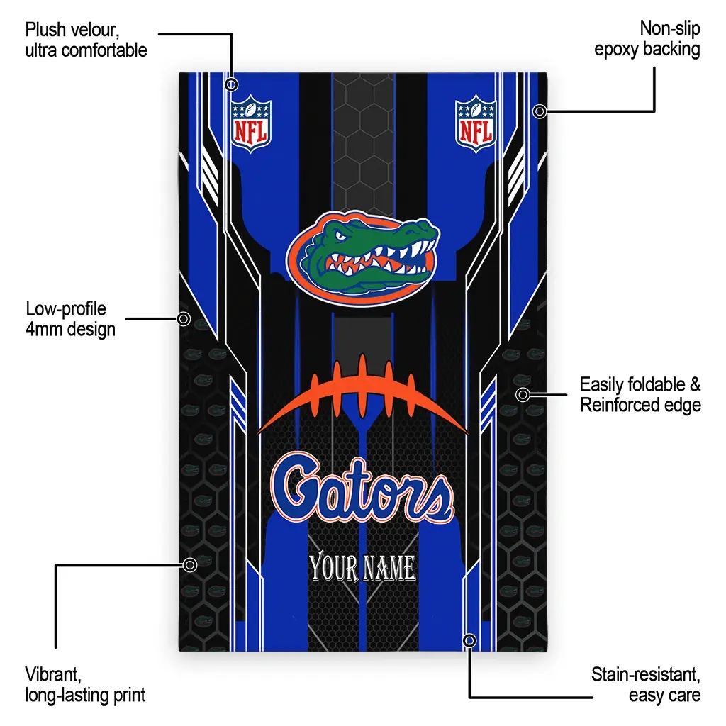 Hit a home run with your favorite team by displaying the Florida Gators Rug – Customized Football Laces Blue from MLB Fan Zone. Featuring a bold team design and crafted with plush velour, this durable sports rug offers ultimate comfort for your home or game-day fan cave. With a quality non-slip grip and stay-flat design, it’s the perfect accessory for any die-hard fan ready to rep their team from the living room to the clubhouse.