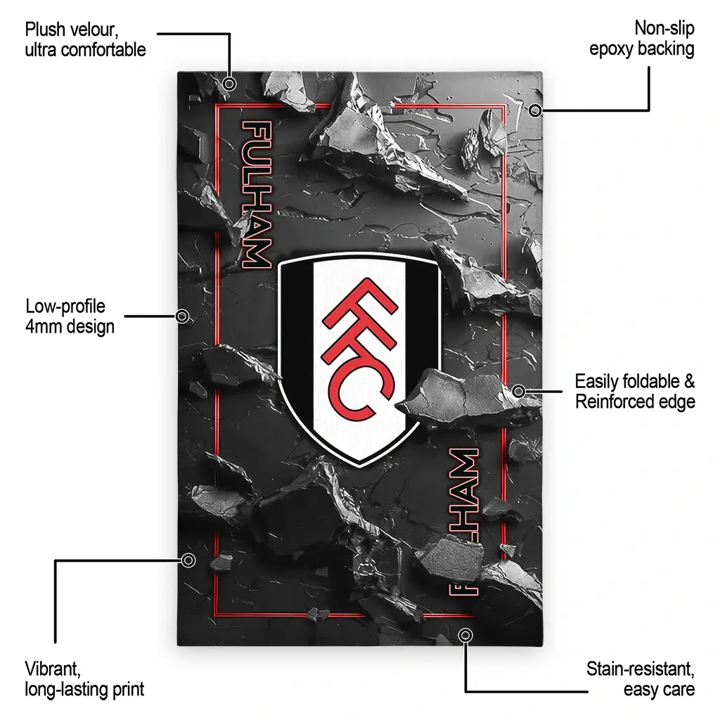 Hit a home run with your favorite team by displaying the Fulham Rug – Personalized Cracked Surface Design Black from MLB Fan Zone. Featuring a bold team design and crafted with plush velour, this durable sports rug offers ultimate comfort for your home or game-day fan cave. With a quality non-slip grip and stay-flat design, it’s the perfect accessory for any die-hard fan ready to rep their team from the living room to the clubhouse.