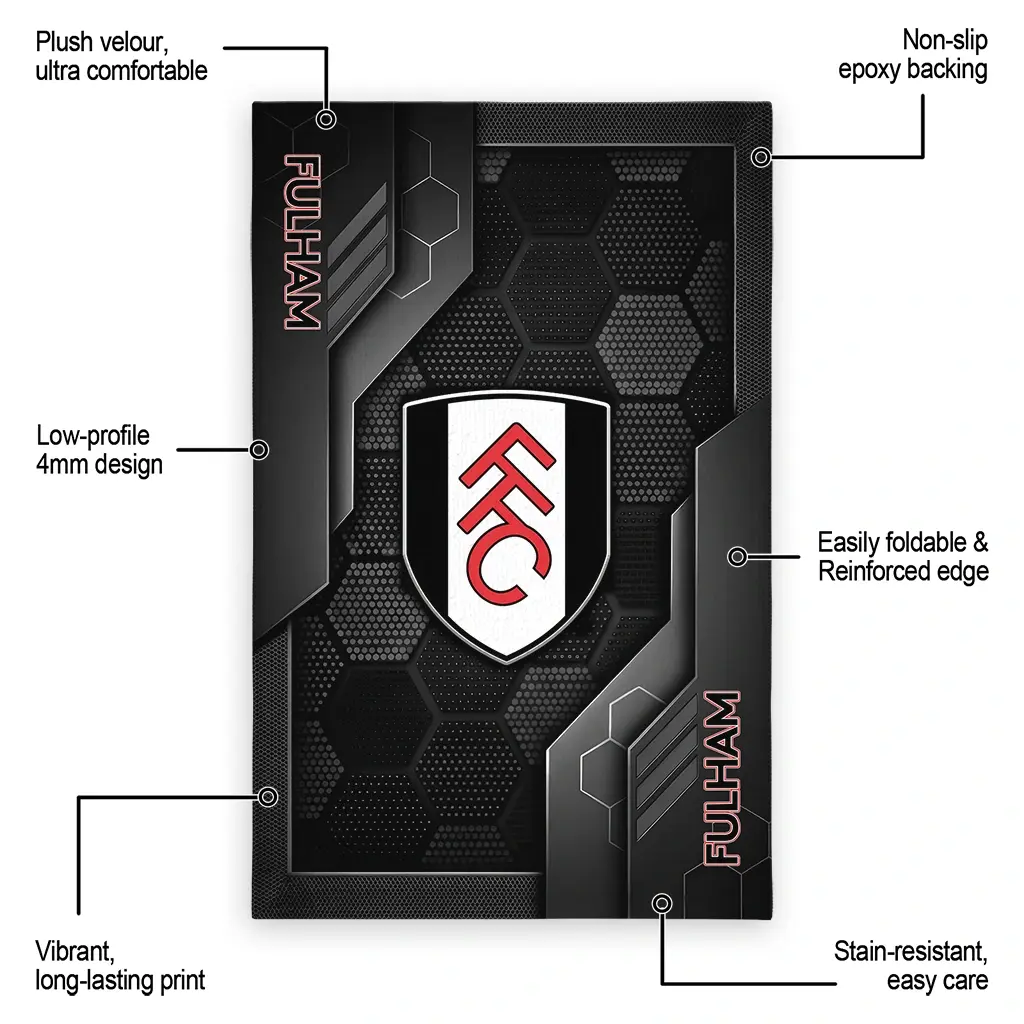 Hit a home run with your favorite team by displaying the Fulham Rug – Customized Hexagonal Grid Pattern Black from MLB Fan Zone. Featuring a bold team design and crafted with plush velour, this durable sports rug offers ultimate comfort for your home or game-day fan cave. With a quality non-slip grip and stay-flat design, it’s the perfect accessory for any die-hard fan ready to rep their team from the living room to the clubhouse.