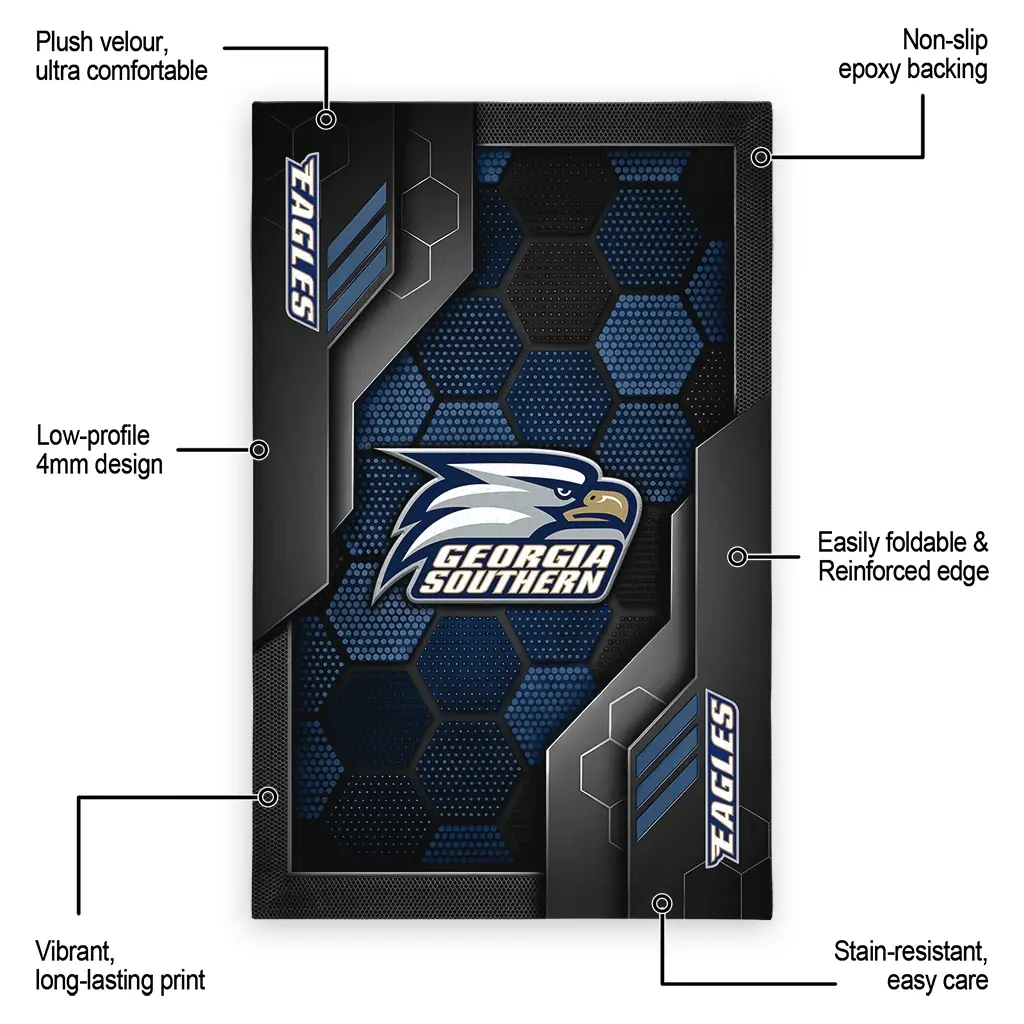 Hit a home run with your favorite team by displaying the Georgia Southern Eagles Rug – Customized Hexagonal Grid Pattern Blue from MLB Fan Zone. Featuring a bold team design and crafted with plush velour, this durable sports rug offers ultimate comfort for your home or game-day fan cave. With a quality non-slip grip and stay-flat design, it’s the perfect accessory for any die-hard fan ready to rep their team from the living room to the clubhouse.