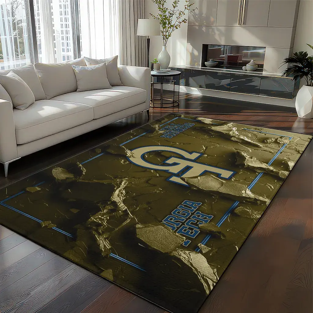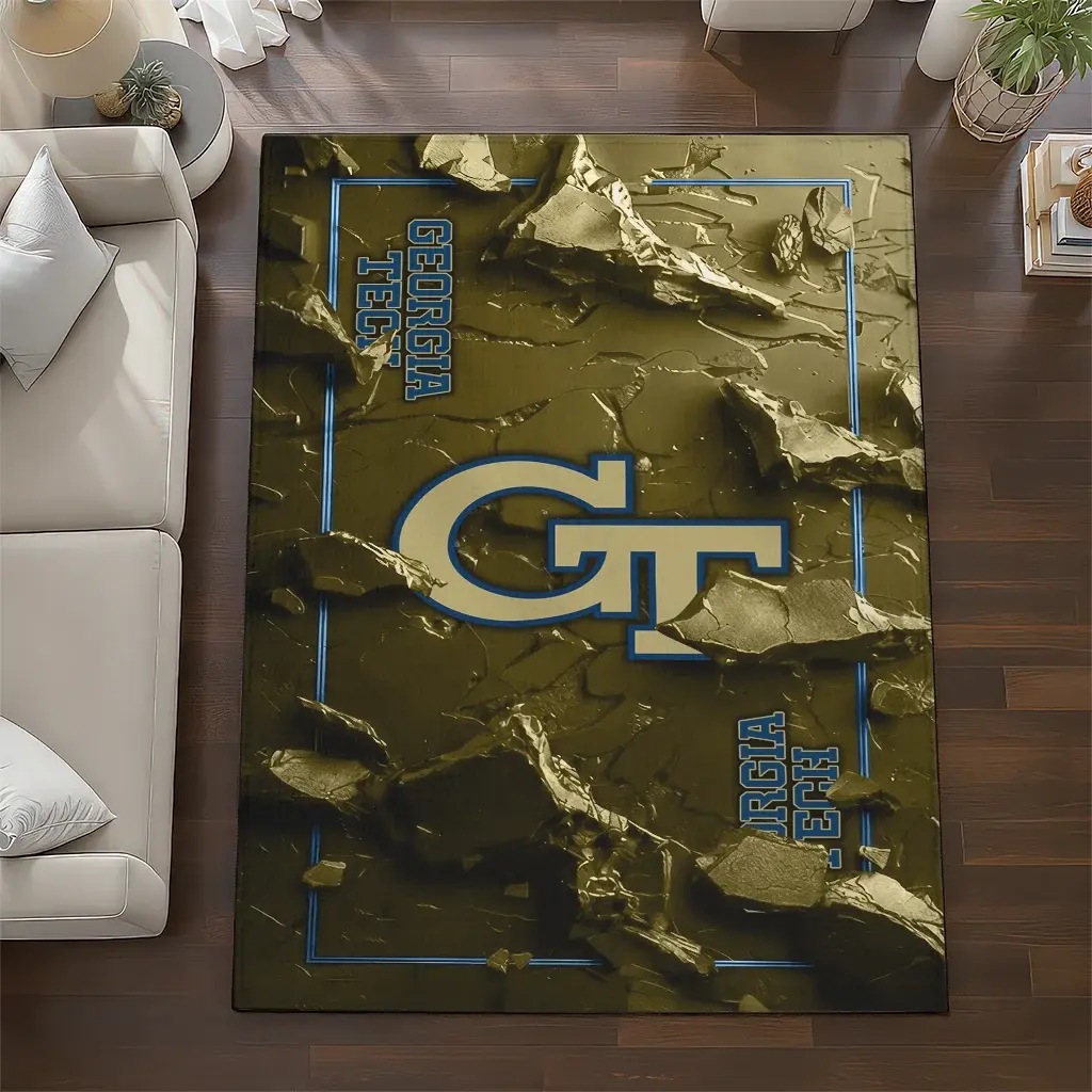 Georgia Tech Yellow Jackets Rug – Cracked Surface Design Gold