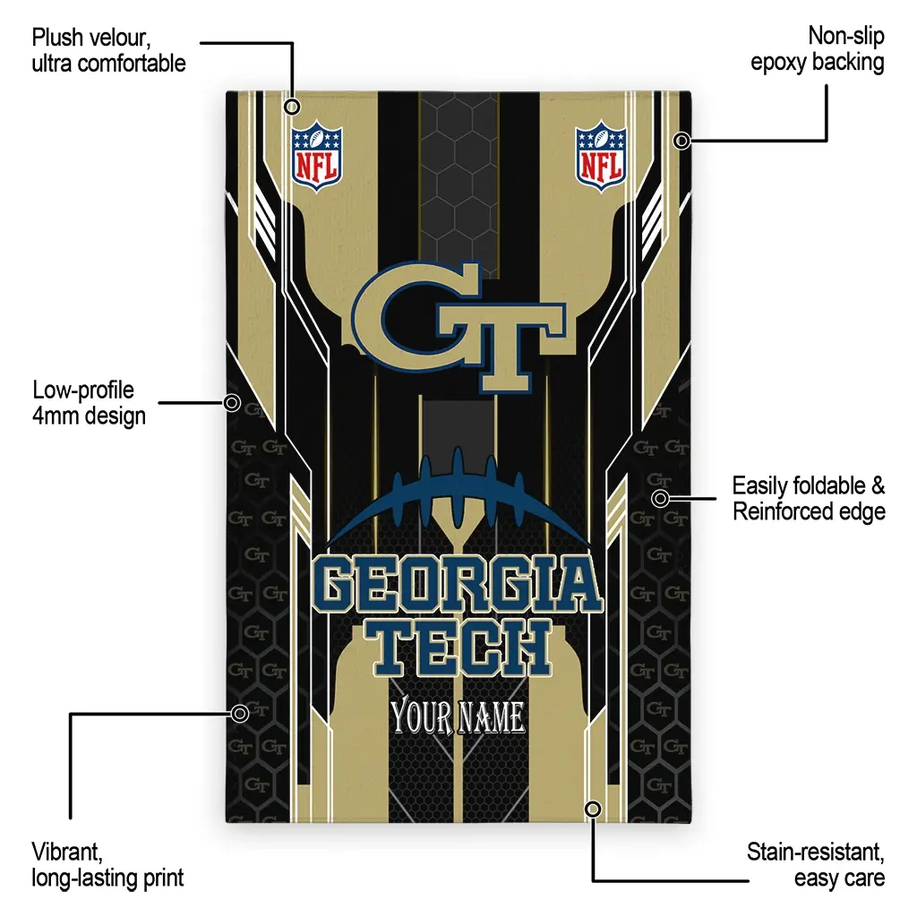 Hit a home run with your favorite team by displaying the Georgia Tech Yellow Jackets Rug – Customized Football Laces Gold from MLB Fan Zone. Featuring a bold team design and crafted with plush velour, this durable sports rug offers ultimate comfort for your home or game-day fan cave. With a quality non-slip grip and stay-flat design, it’s the perfect accessory for any die-hard fan ready to rep their team from the living room to the clubhouse.