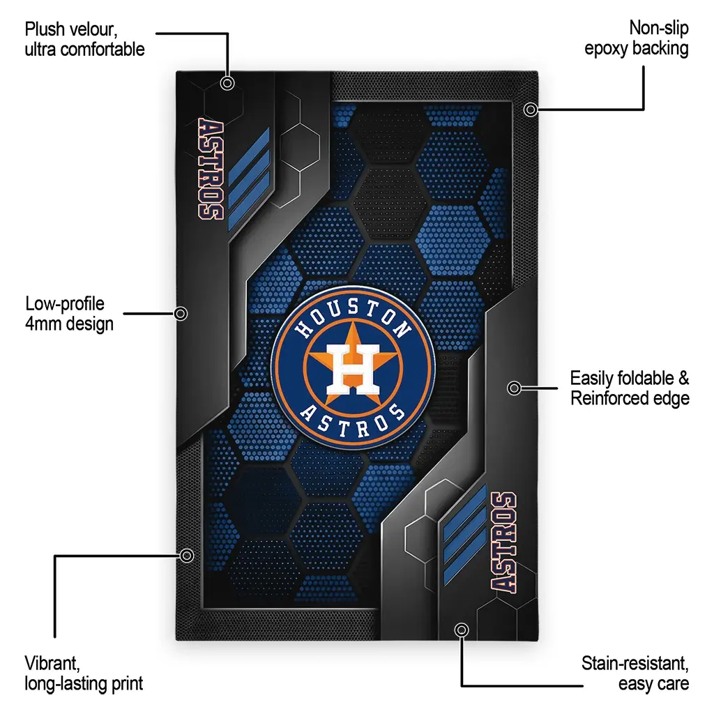 Hit a home run with your favorite team by displaying the Houston Astros Rug – Customized Hexagonal Grid Pattern Blue from MLB Fan Zone. Featuring a bold team design and crafted with plush velour, this durable sports rug offers ultimate comfort for your home or game-day fan cave. With a quality non-slip grip and stay-flat design, it’s the perfect accessory for any die-hard fan ready to rep their team from the living room to the clubhouse.