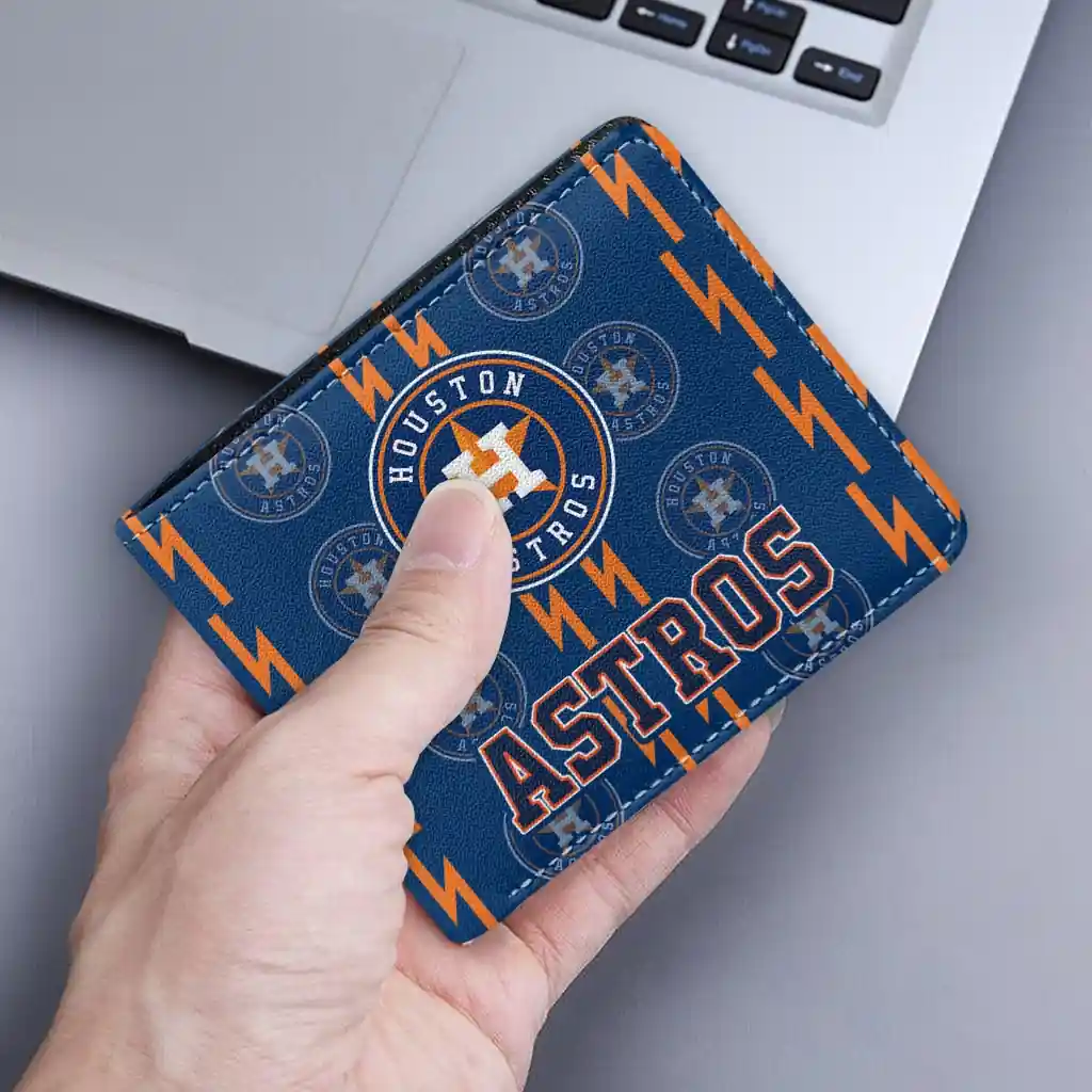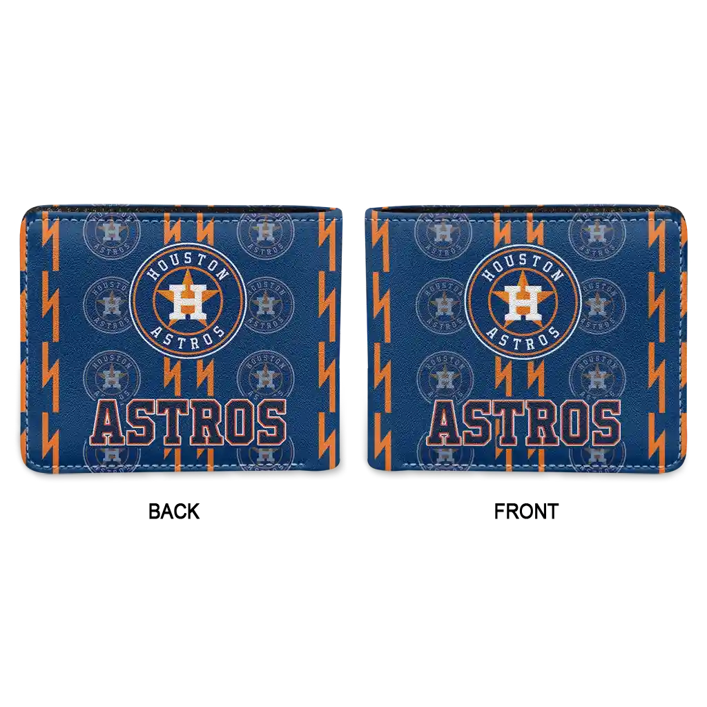 Hit a home run with Houston Astros by wearing the Houston Astros Bolt Rows Blue Wallet. Featuring a bold team design and crafted with premium materials, this durable sports wallet offers plenty of space for your cards, cash, and game-day essentials. With a secure fold-over closure, it’s the perfect accessory for any die-hard fan ready to rep their team, from the dugout to the streets.