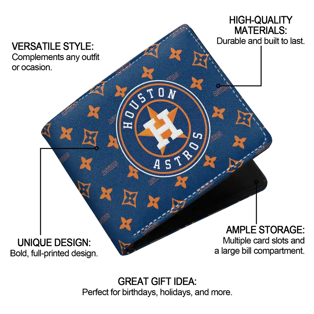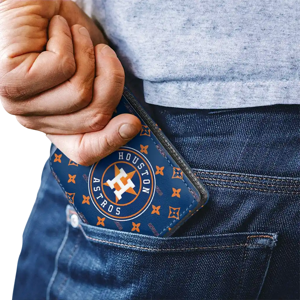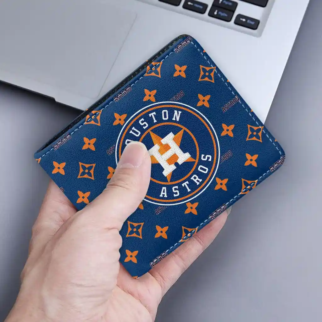 Hit a home run with Houston Astros by wearing the Houston Astros Iconic Monogram Bloom Blue Wallet. Featuring a bold team design and crafted with premium materials, this durable sports wallet offers plenty of space for your cards, cash, and game-day essentials. With a secure fold-over closure, it’s the perfect accessory for any die-hard fan ready to rep their team, from the dugout to the streets.
