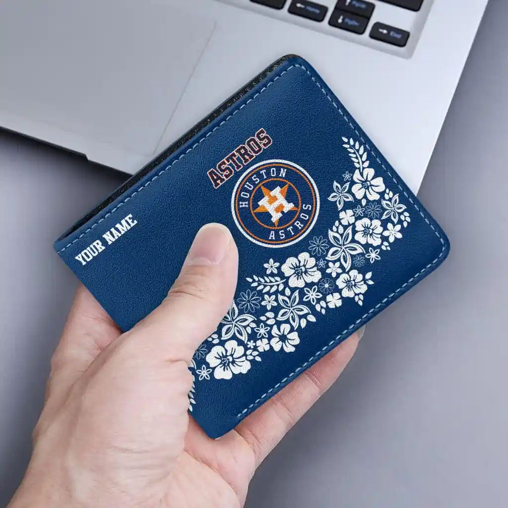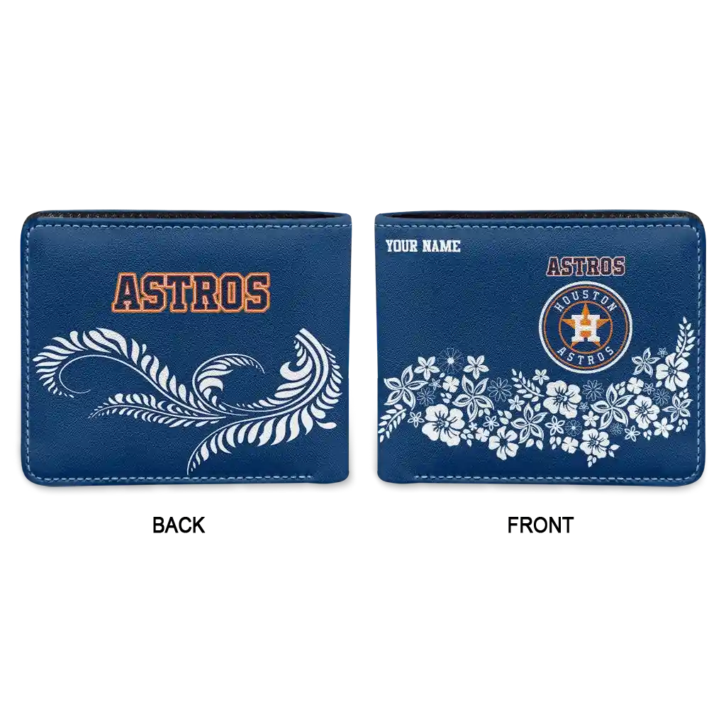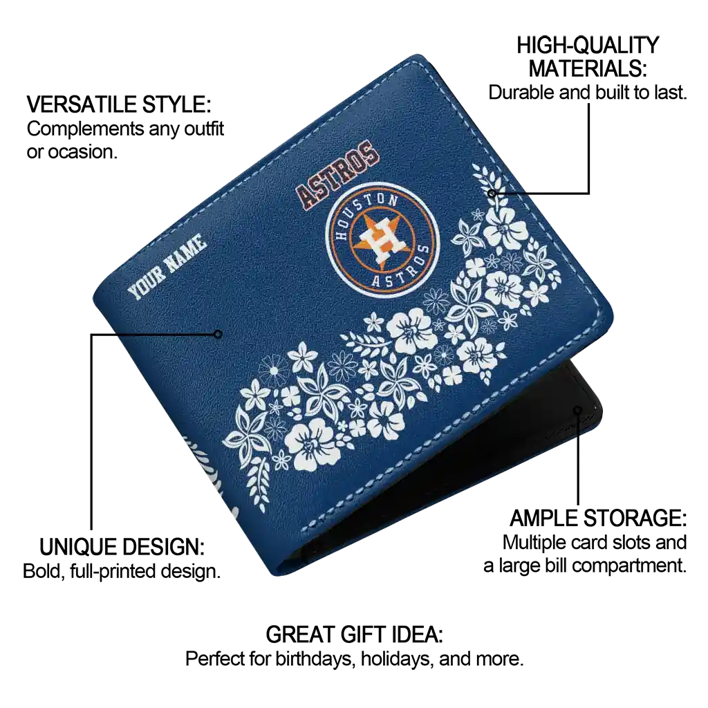 Hit a home run with Houston Astros by wearing the Personalized Houston Astros Floral Cluster Blue White Wallet. Featuring a bold team design and crafted with premium materials, this durable sports wallet offers plenty of space for your cards, cash, and game-day essentials. With a secure fold-over closure, it’s the perfect accessory for any die-hard fan ready to rep their team, from the dugout to the streets.