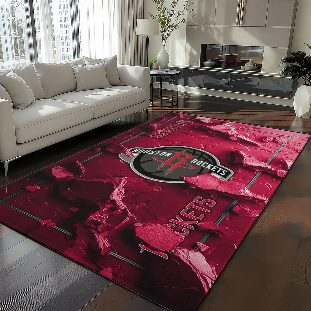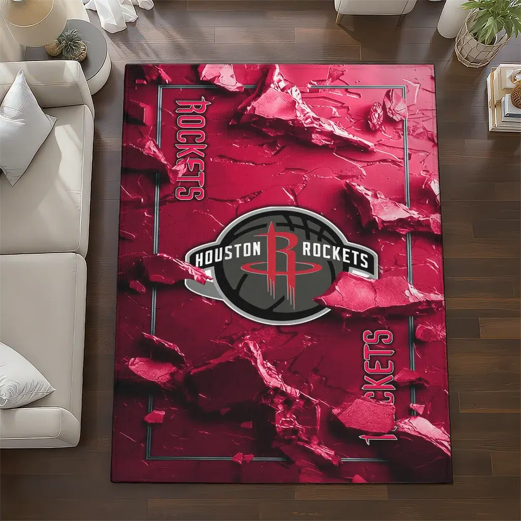 Houston Rockets Rug – Cracked Surface Design Red