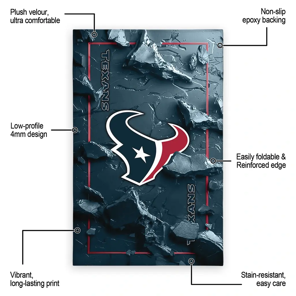 Hit a home run with your favorite team by displaying the Houston Texans Rug – Personalized Cracked Surface Design Blue from MLB Fan Zone. Featuring a bold team design and crafted with plush velour, this durable sports rug offers ultimate comfort for your home or game-day fan cave. With a quality non-slip grip and stay-flat design, it’s the perfect accessory for any die-hard fan ready to rep their team from the living room to the clubhouse.