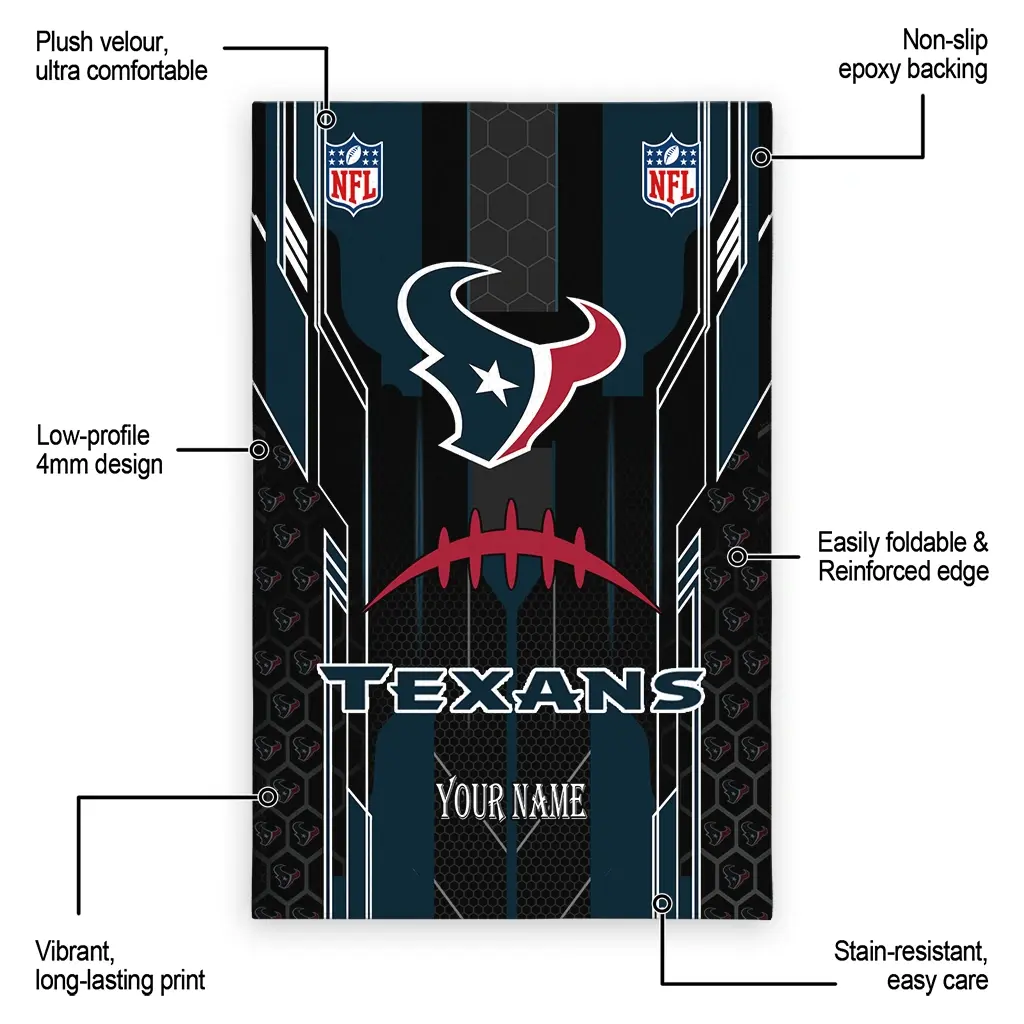 Hit a home run with your favorite team by displaying the Houston Texans Rug – Customized Football Laces Blue from MLB Fan Zone. Featuring a bold team design and crafted with plush velour, this durable sports rug offers ultimate comfort for your home or game-day fan cave. With a quality non-slip grip and stay-flat design, it’s the perfect accessory for any die-hard fan ready to rep their team from the living room to the clubhouse.