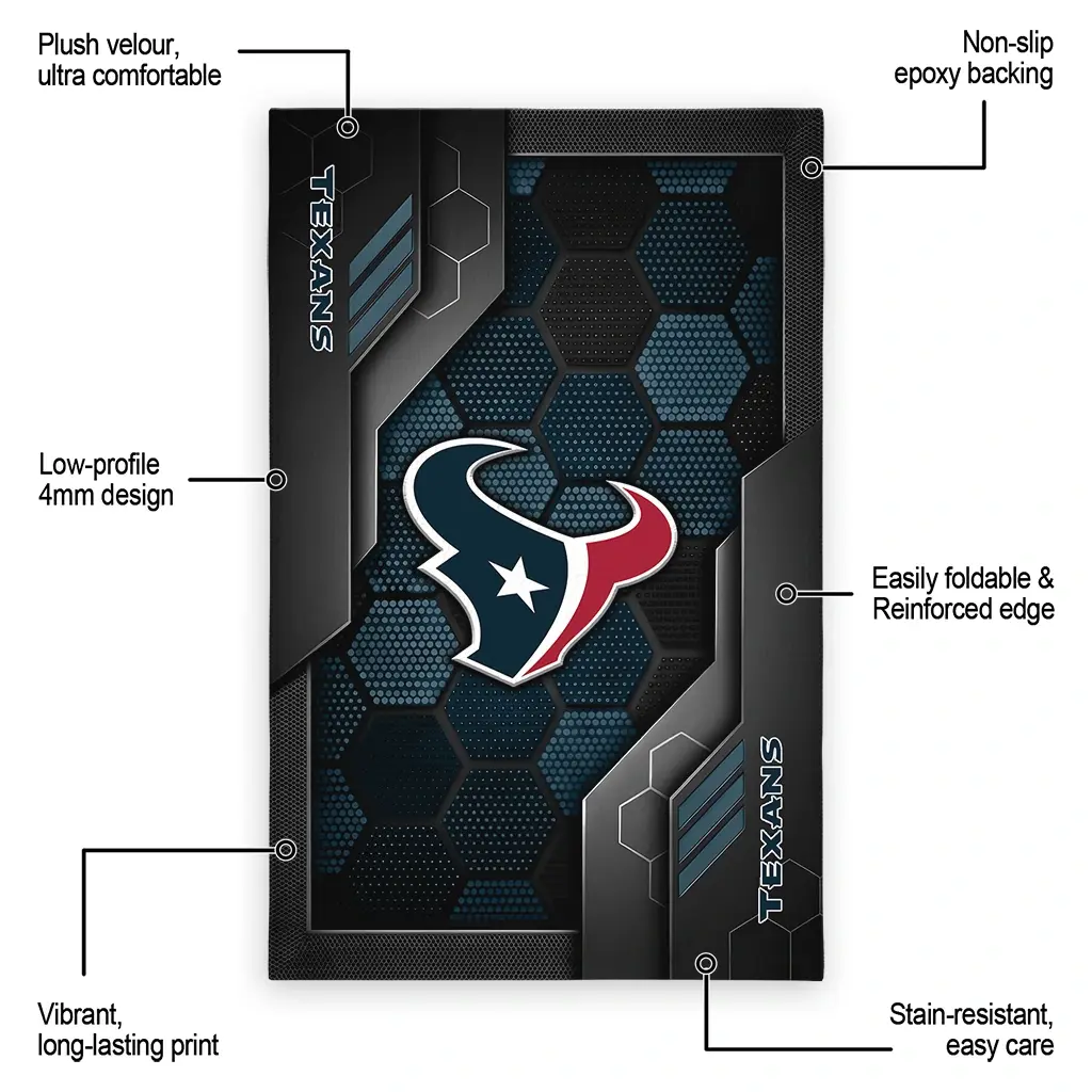 Hit a home run with your favorite team by displaying the Houston Texans Rug – Customized Hexagonal Grid Pattern Blue from MLB Fan Zone. Featuring a bold team design and crafted with plush velour, this durable sports rug offers ultimate comfort for your home or game-day fan cave. With a quality non-slip grip and stay-flat design, it’s the perfect accessory for any die-hard fan ready to rep their team from the living room to the clubhouse.