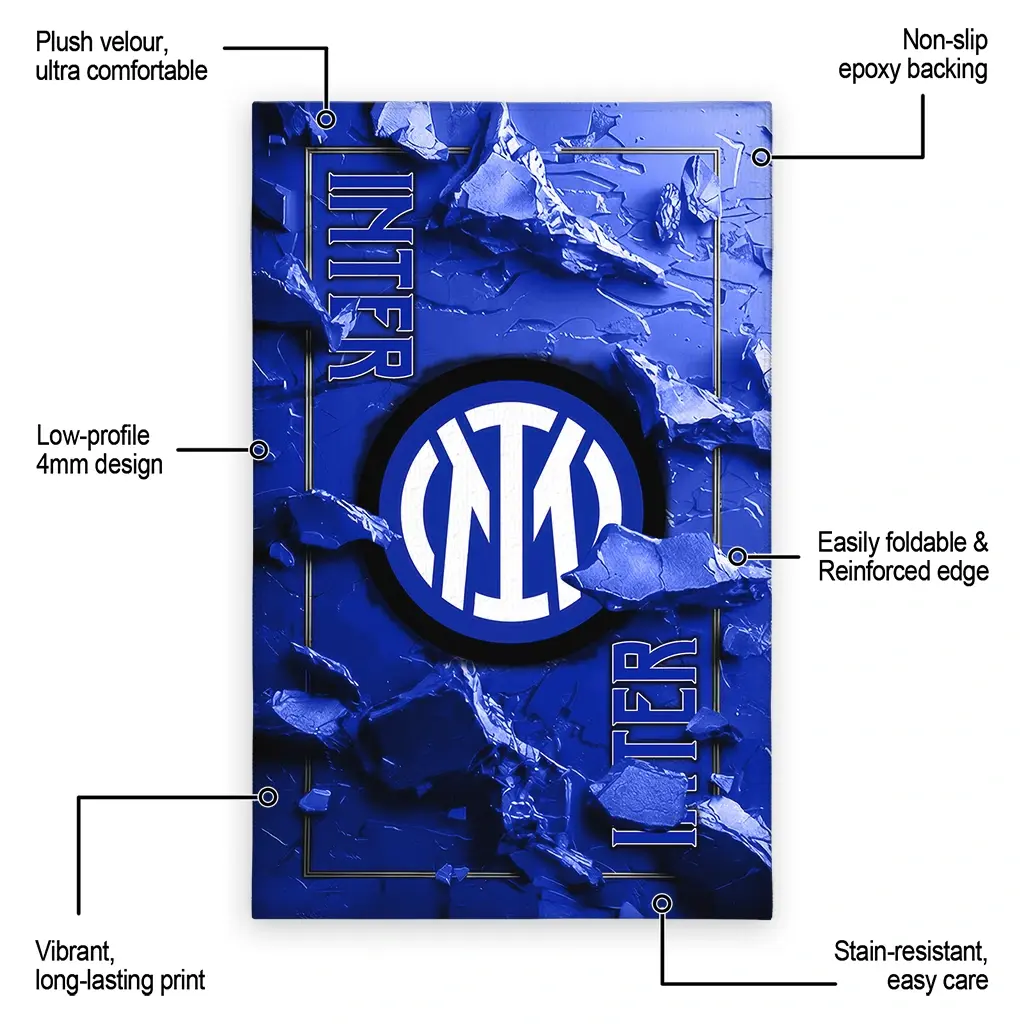 Hit a home run with your favorite team by displaying the Inter Milan Rug – Personalized Cracked Surface Design Blue from MLB Fan Zone. Featuring a bold team design and crafted with plush velour, this durable sports rug offers ultimate comfort for your home or game-day fan cave. With a quality non-slip grip and stay-flat design, it’s the perfect accessory for any die-hard fan ready to rep their team from the living room to the clubhouse.
