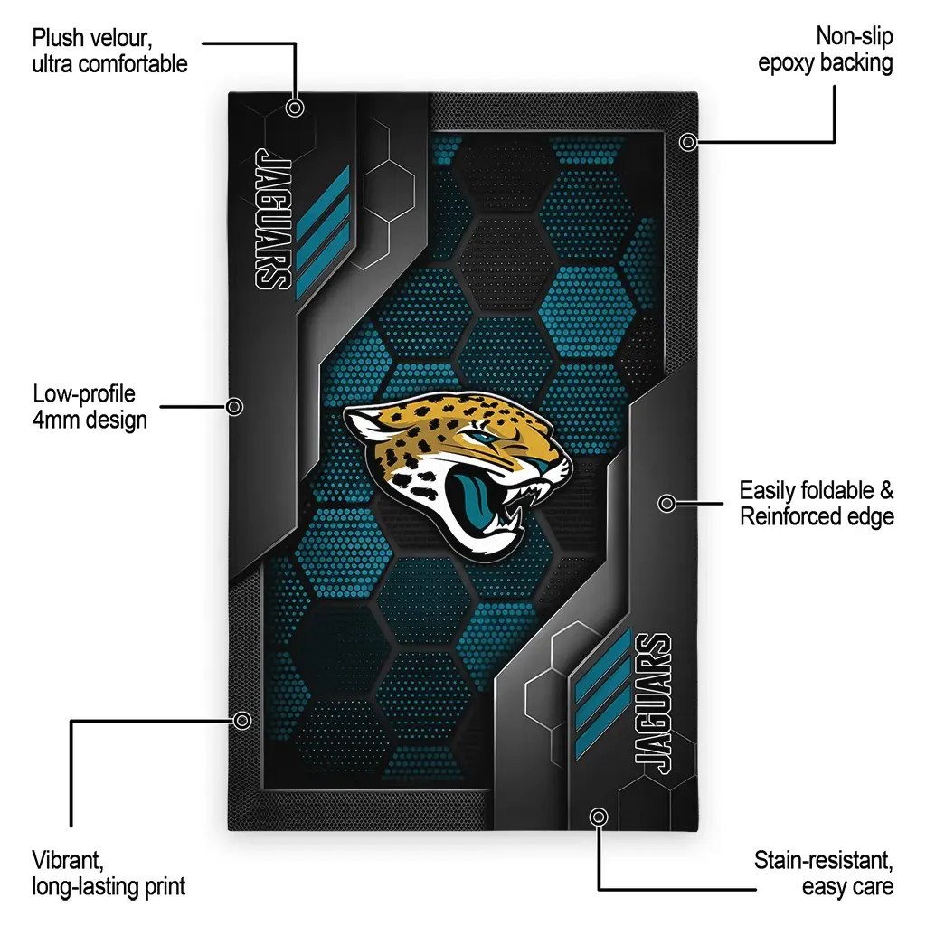 Hit a home run with your favorite team by displaying the Jacksonville Jaguars Rug – Custom Hexagonal Grid Pattern Teal from MLB Fan Zone. Featuring a bold team design and crafted with plush velour, this durable sports rug offers ultimate comfort for your home or game-day fan cave. With a quality non-slip grip and stay-flat design, it’s the perfect accessory for any die-hard fan ready to rep their team from the living room to the clubhouse.