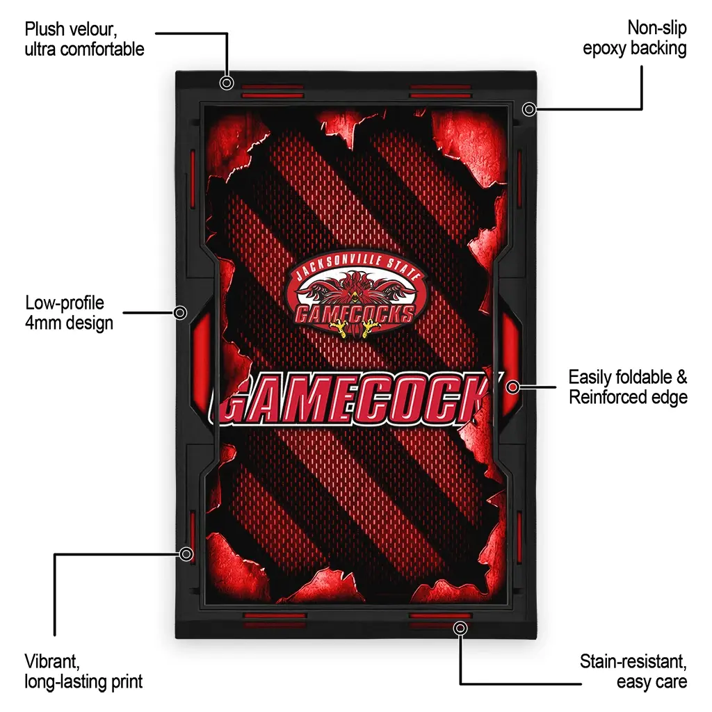 Hit a home run with your favorite team by displaying the Jacksonville State Gamecocks Rug – Custom Torn Mesh Red from MLB Fan Zone. Featuring a bold team design and crafted with plush velour, this durable sports rug offers ultimate comfort for your home or game-day fan cave. With a quality non-slip grip and stay-flat design, it’s the perfect accessory for any die-hard fan ready to rep their team from the living room to the clubhouse.